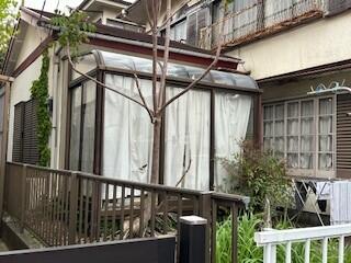 テラスの解体工事とテラス下から生えてしまった木の伐根工事の事例です。