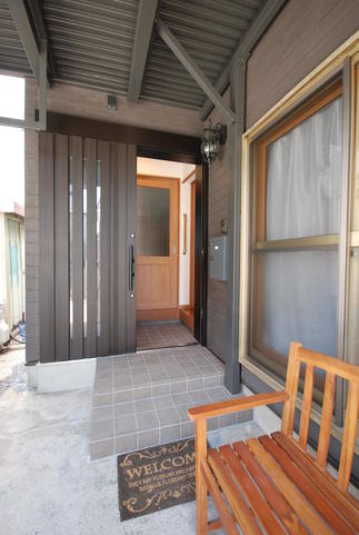 玄関ドアを引違い戸から片引き戸に変更。 間口の広いタイプを採用し沓摺の段差を無くし、フラットに仕上げました。