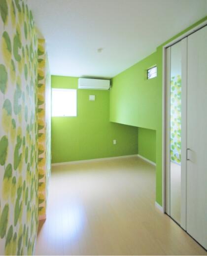 ふたり姉妹のお姉さんのお部屋。カラフルな壁紙はお姉さんが自分で選びました。