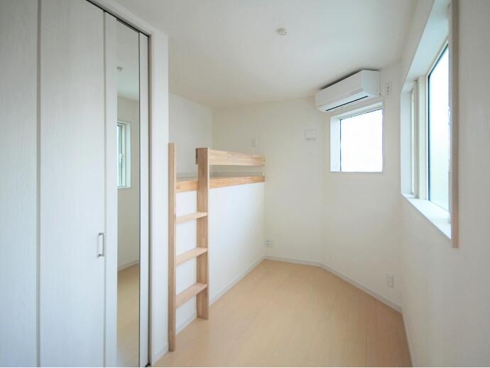 妹さんのお部屋。作り付けのベッドはお姉さんの部屋のでっぱり部分。ベッド上部の小窓でお姉さんの部屋とつながっています。