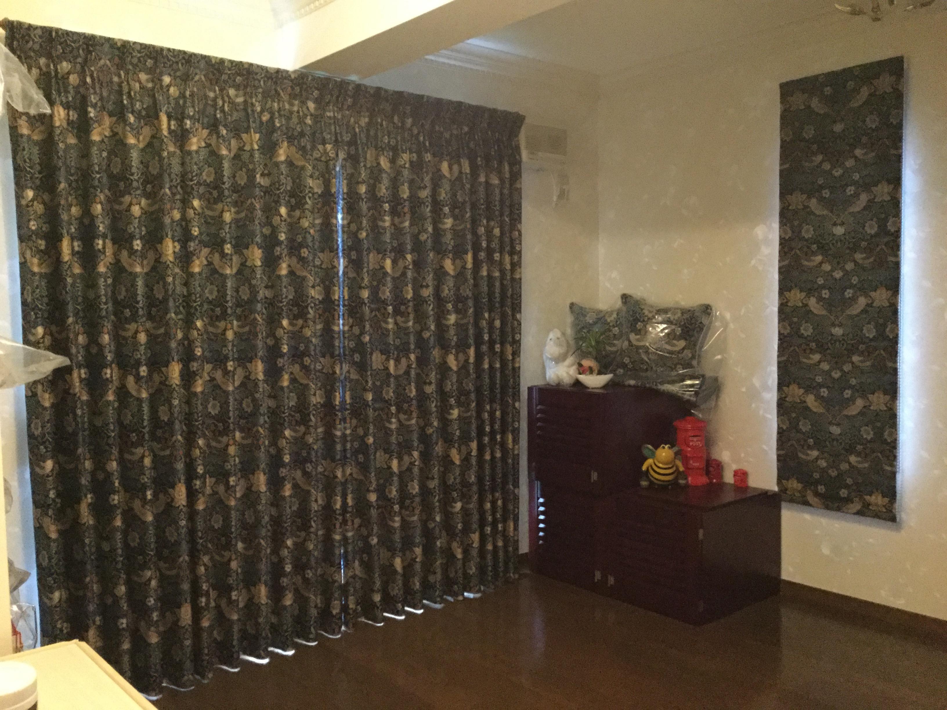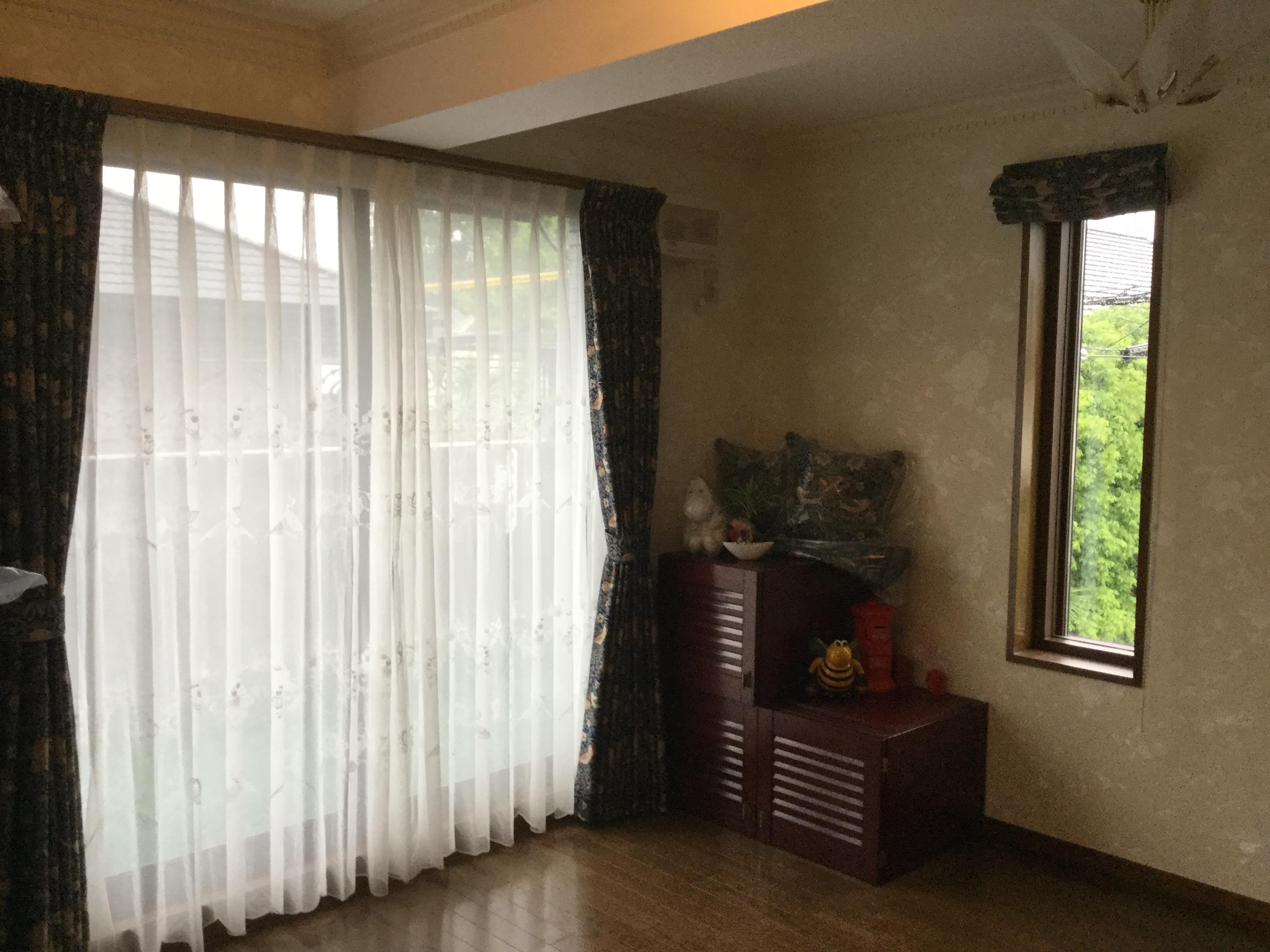 お客様の要望で、豪華な感じのカーテンにしてほしいとの要望でしたので、すぐ豪華かつ品のある川島織物セルコンをお勧めいたしました。 お施主様は、すぐに気に入ってくださいました。