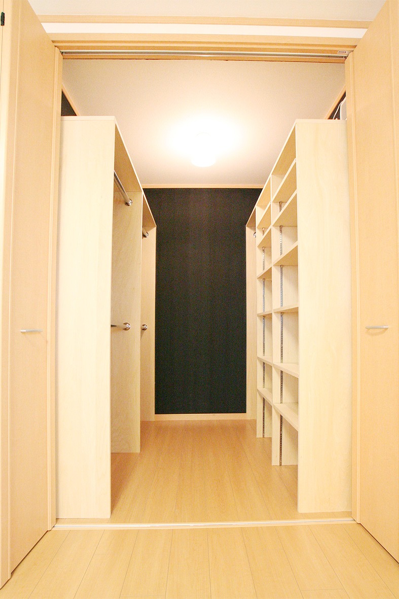 ウォークインクローゼットで、収納する物に合わせて、見える化