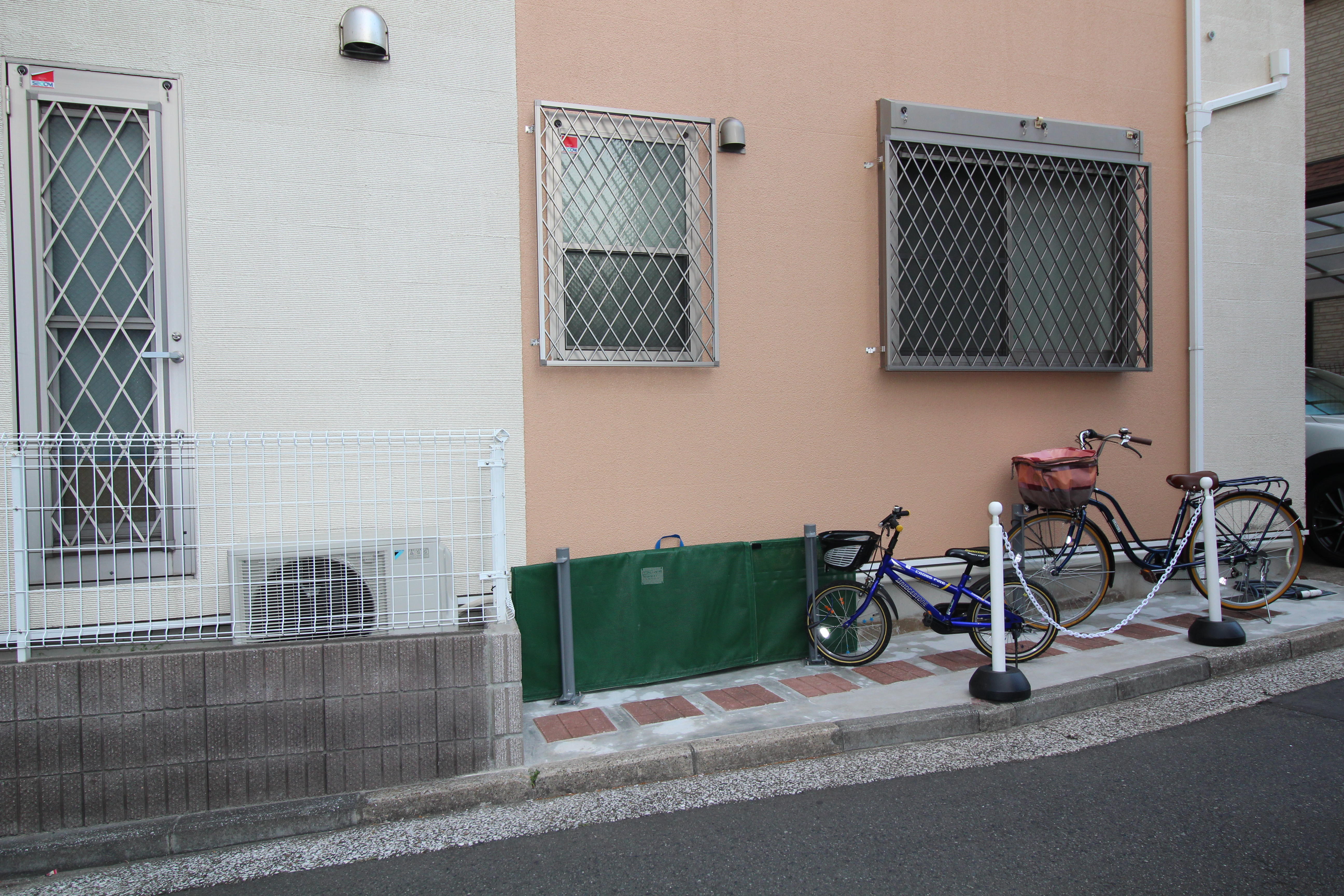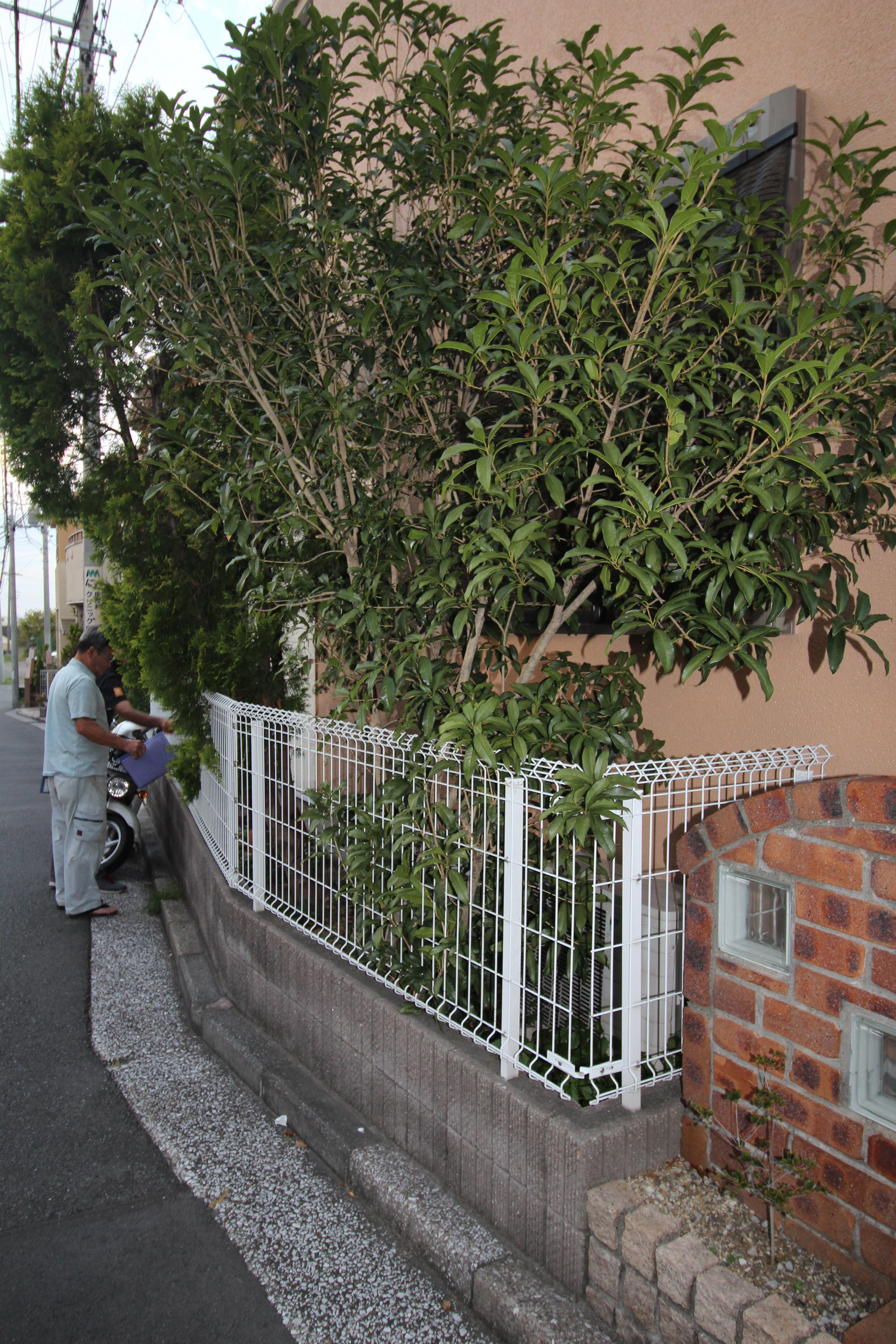去年(2019年)に続いた台風で植栽がグラグラになり危険だったので、立木と既存のブロック、フェンスを撤去し、そのスペースに自転車置場を作りました。