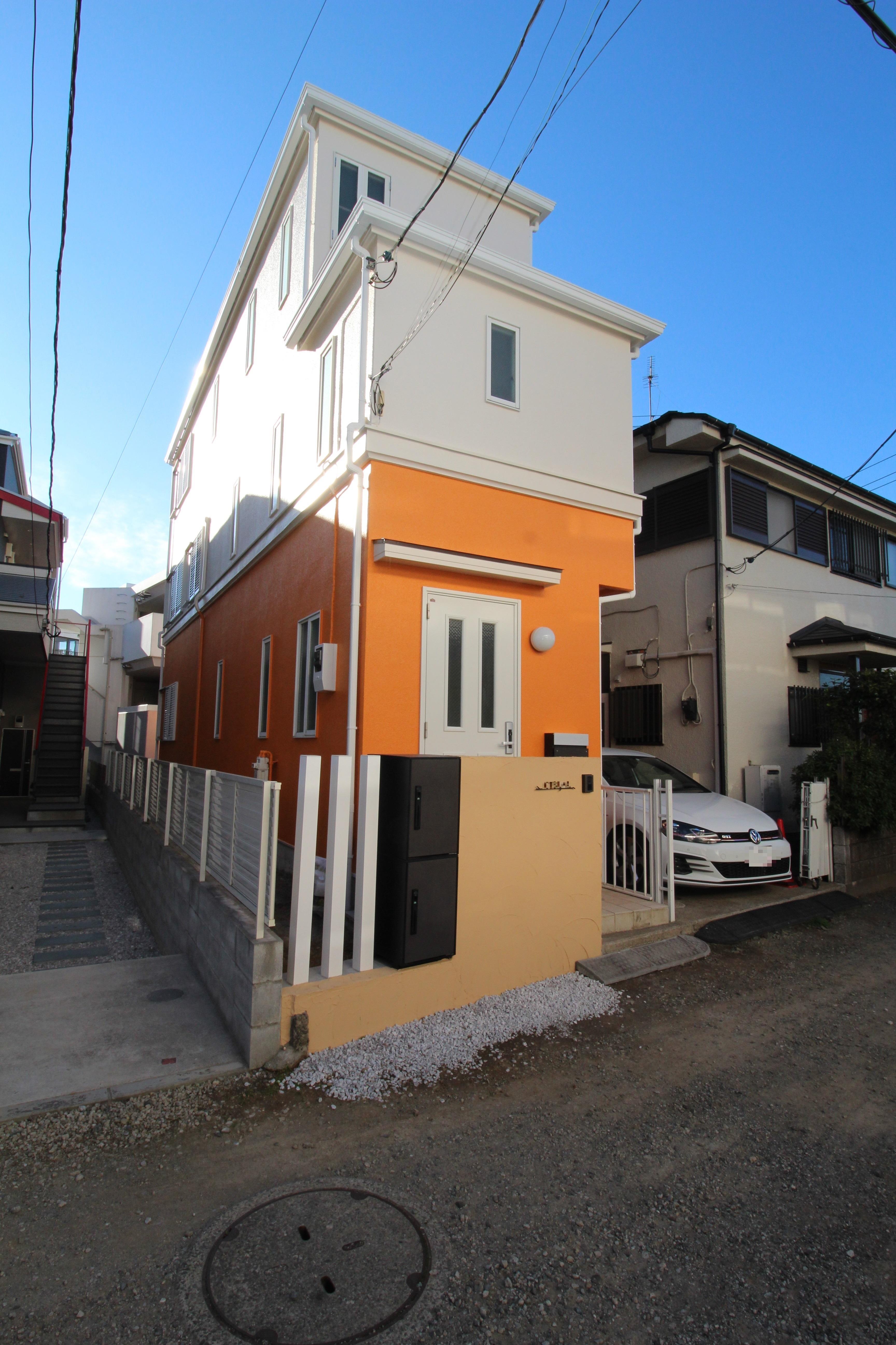 反対角度からのお写真。空の青さが外壁の鮮やかさを、一層輝かせてくれていますね。