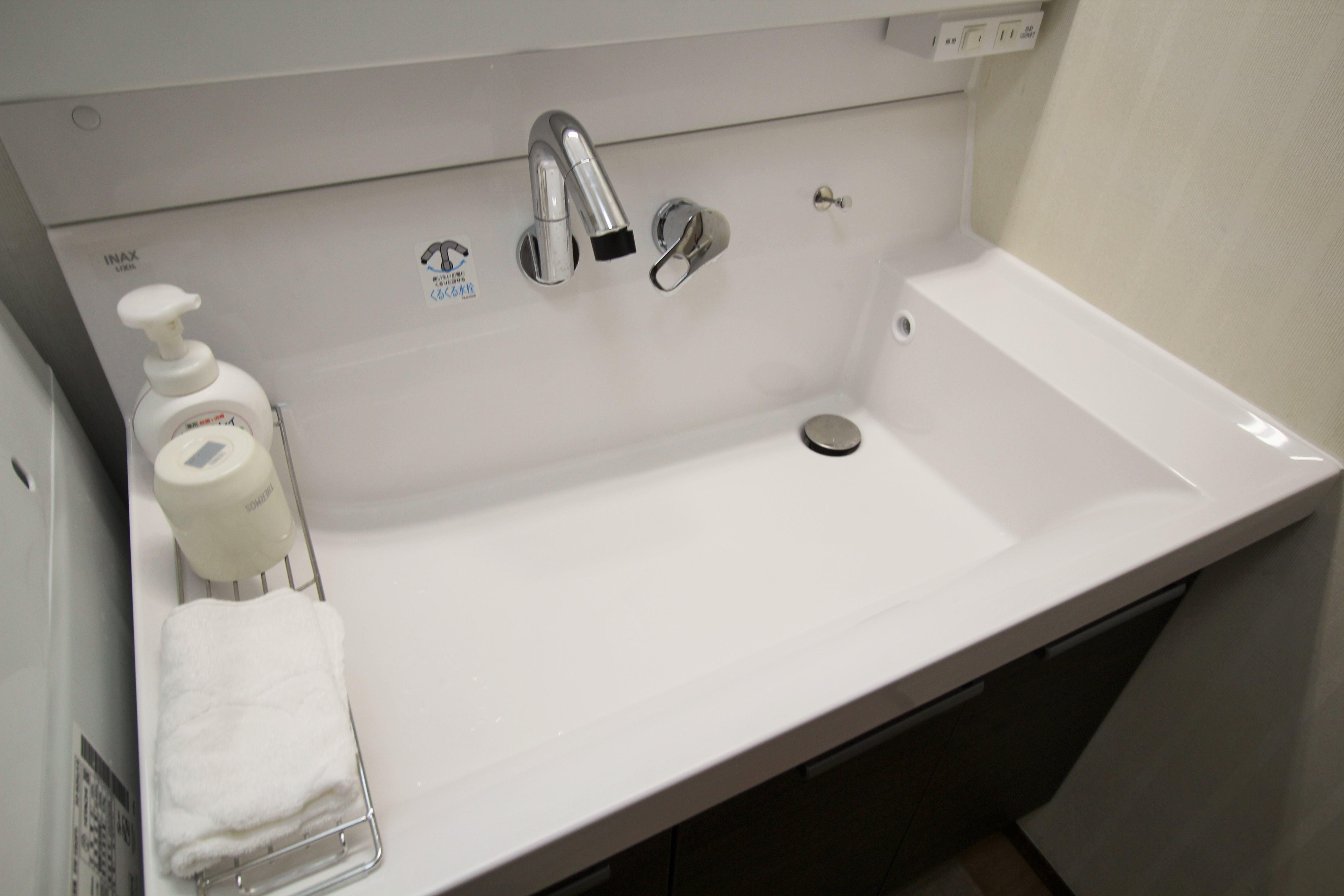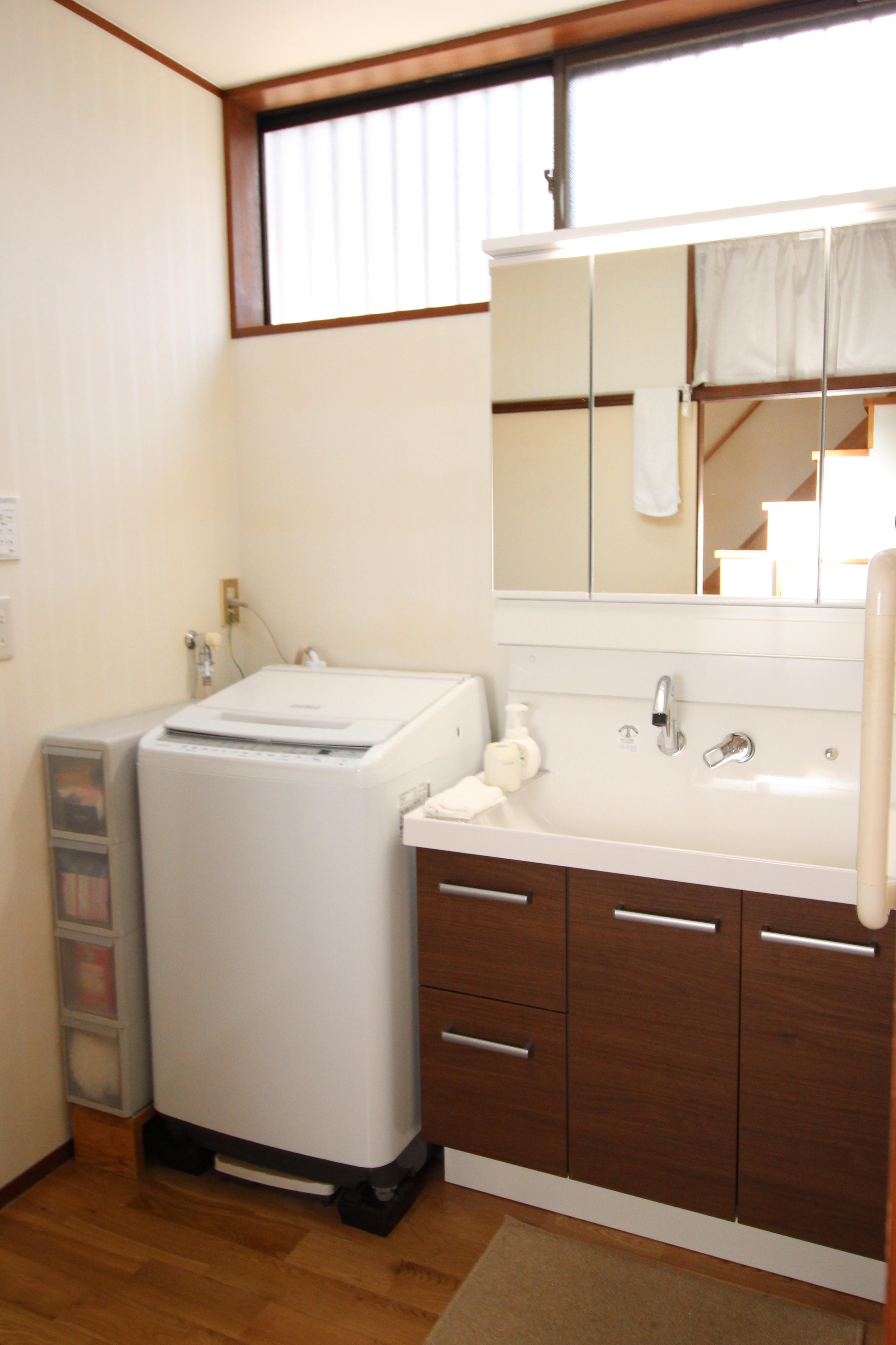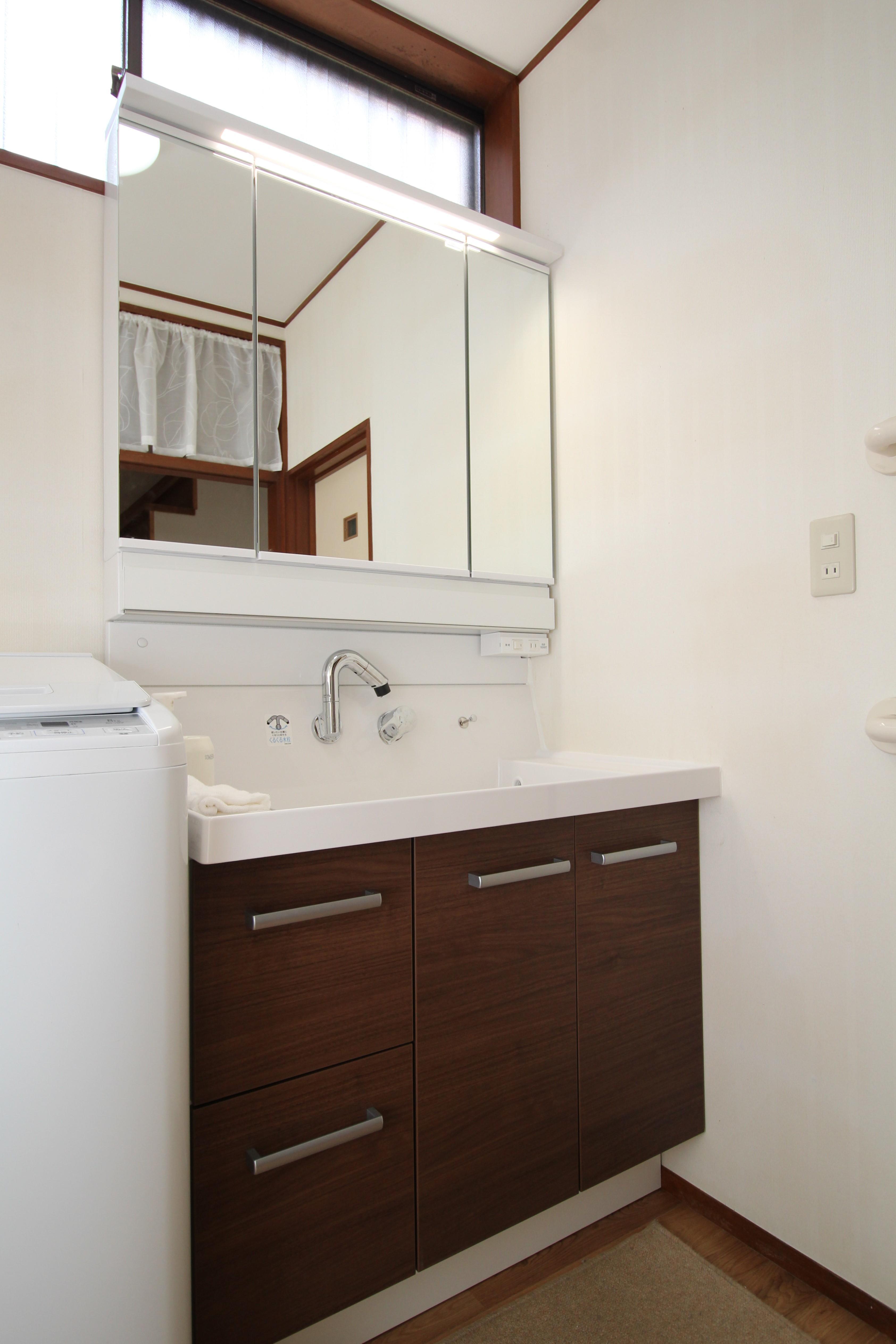 これで洗面化粧台で朝シャンをする娘様やお孫様が遊びに来ても快適にご使用いただけます。