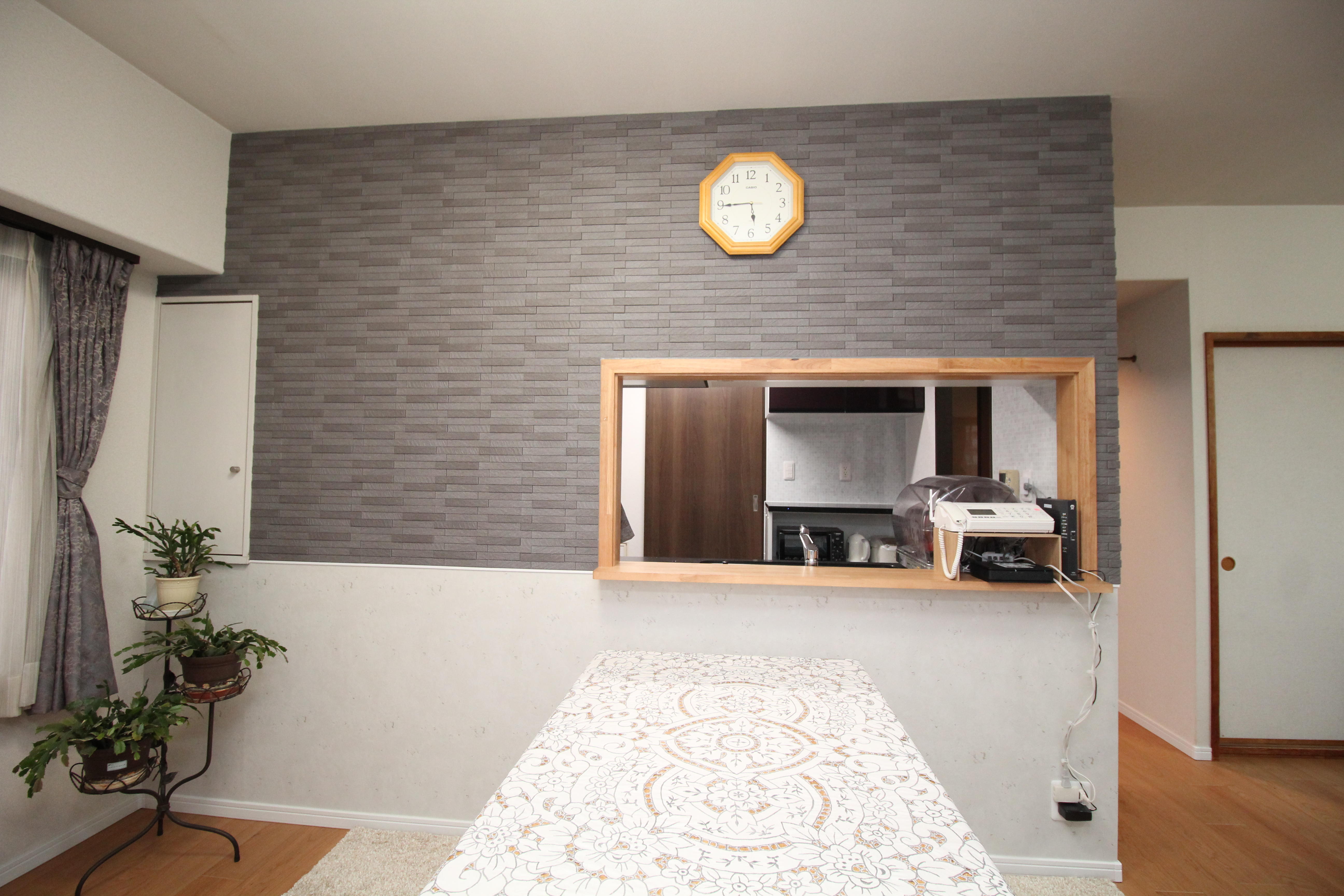 ダイニング側の壁面にはエコカラットで重厚感のあるアクセントをプラス。
