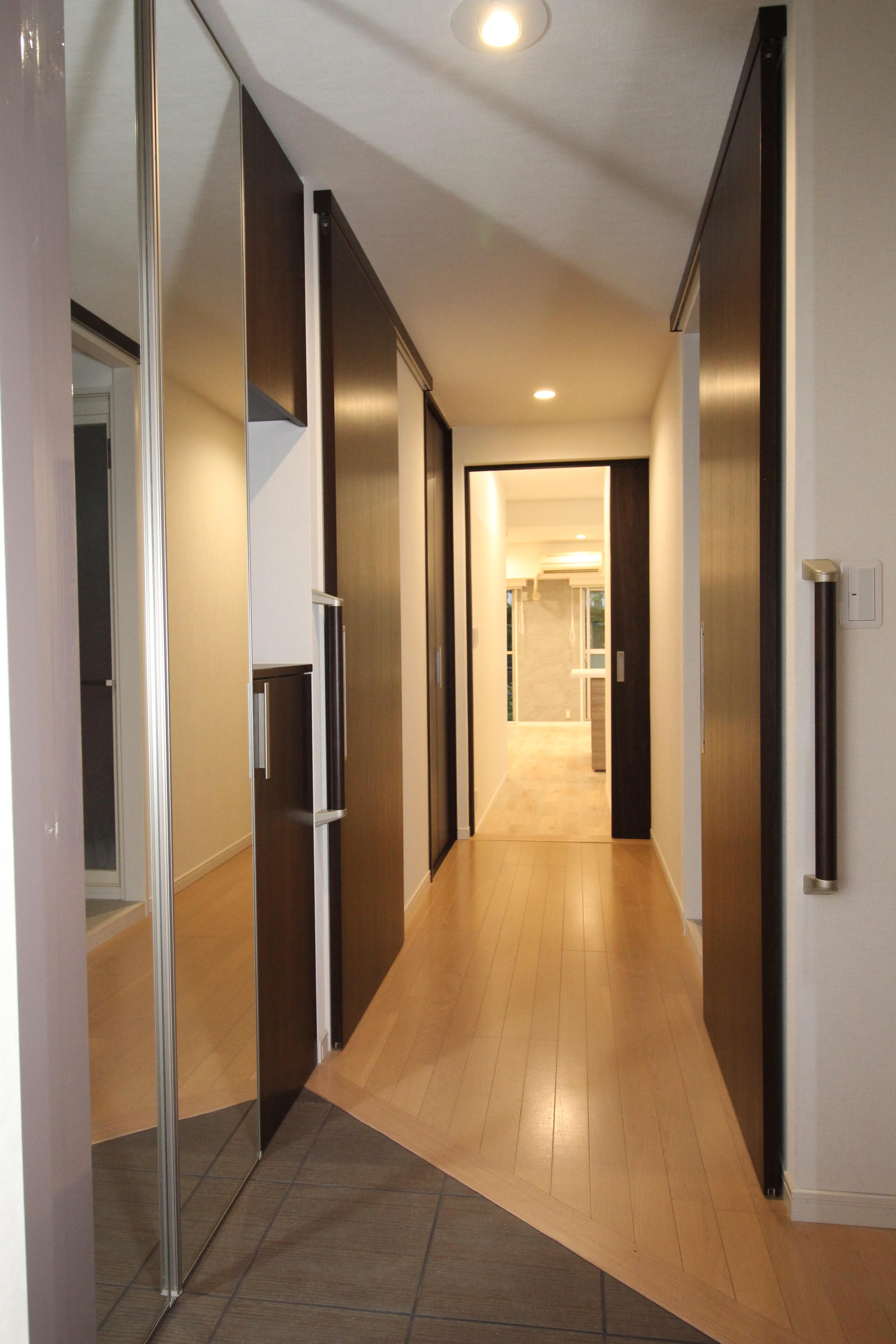 床は店舗などでも用いられる長尺シートを使用。フローリングと比べ汚れも簡単に落とせ、キャスターを使用しても傷がつきにくいです。ベランダでの園芸が趣味で、以前は室内を汚してしまう事が気掛かりとのことでしたが、これで心置きなく趣味を楽しめます。