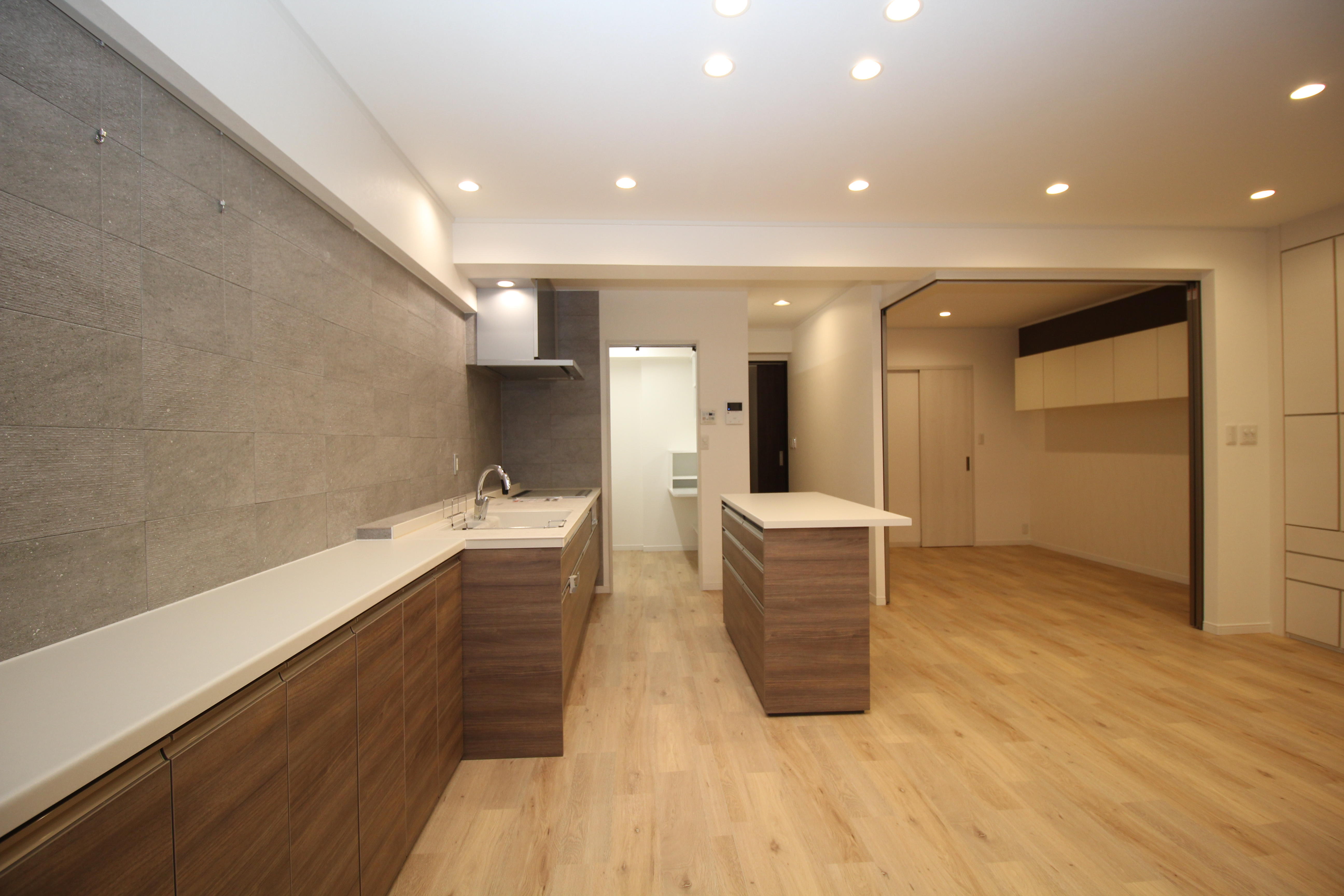 奥に独立してあったキッチンをLDだった空間に持ってきて、お2人で料理を楽しめるオープンキッチンにしました。