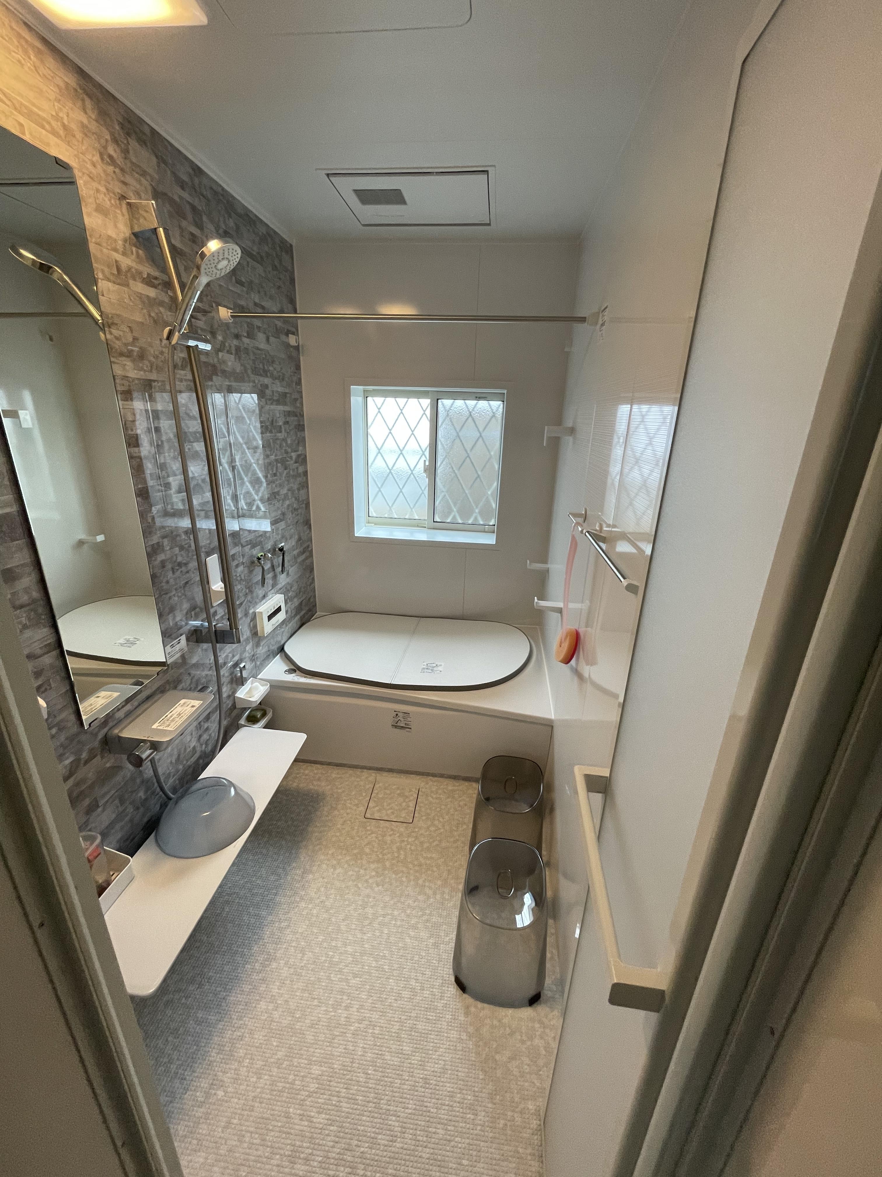 “手すり兼用”のシャワー、いつも足にやさしくお掃除も楽なCMで話題の「ほっカラリ床」、断熱浴槽、暖房換気扇に、断熱サッシの窓でゆったり温かなリラックスできる使い勝手の良いバスルームに生まれ変わりました。