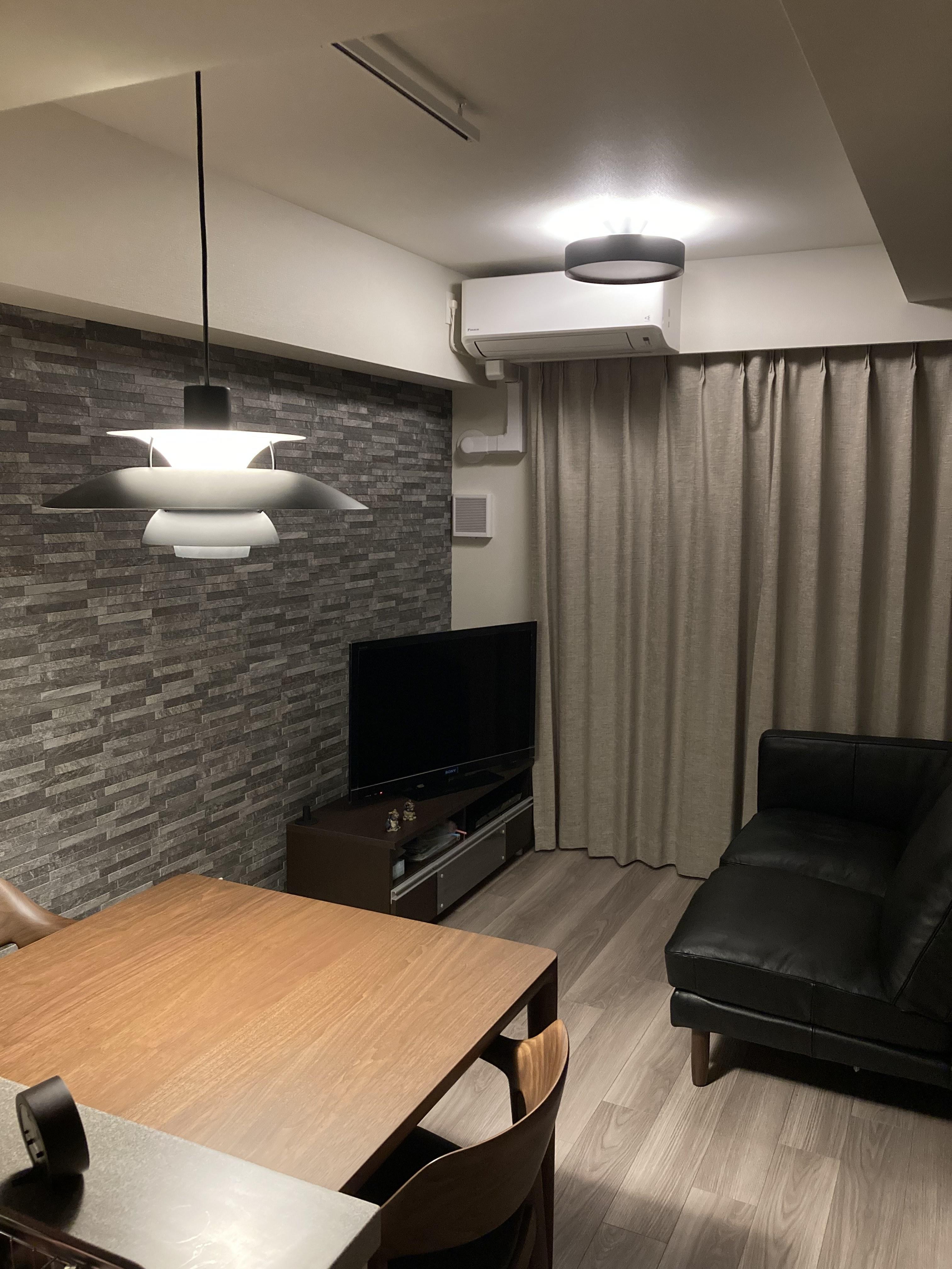 もともとエコカラットを貼った壁面の上部に設置する仕様でしたが、折角の意匠を堪能できるよう設置場所を窓側の壁に変更しました。
