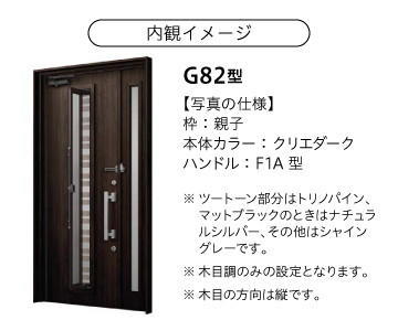 玄関ドア:リクシル リシェント 断熱仕様K4・G82型・採風(縦辷り)・片袖飾りランマ無し・中桟付ポスト付・色クリエダーク
