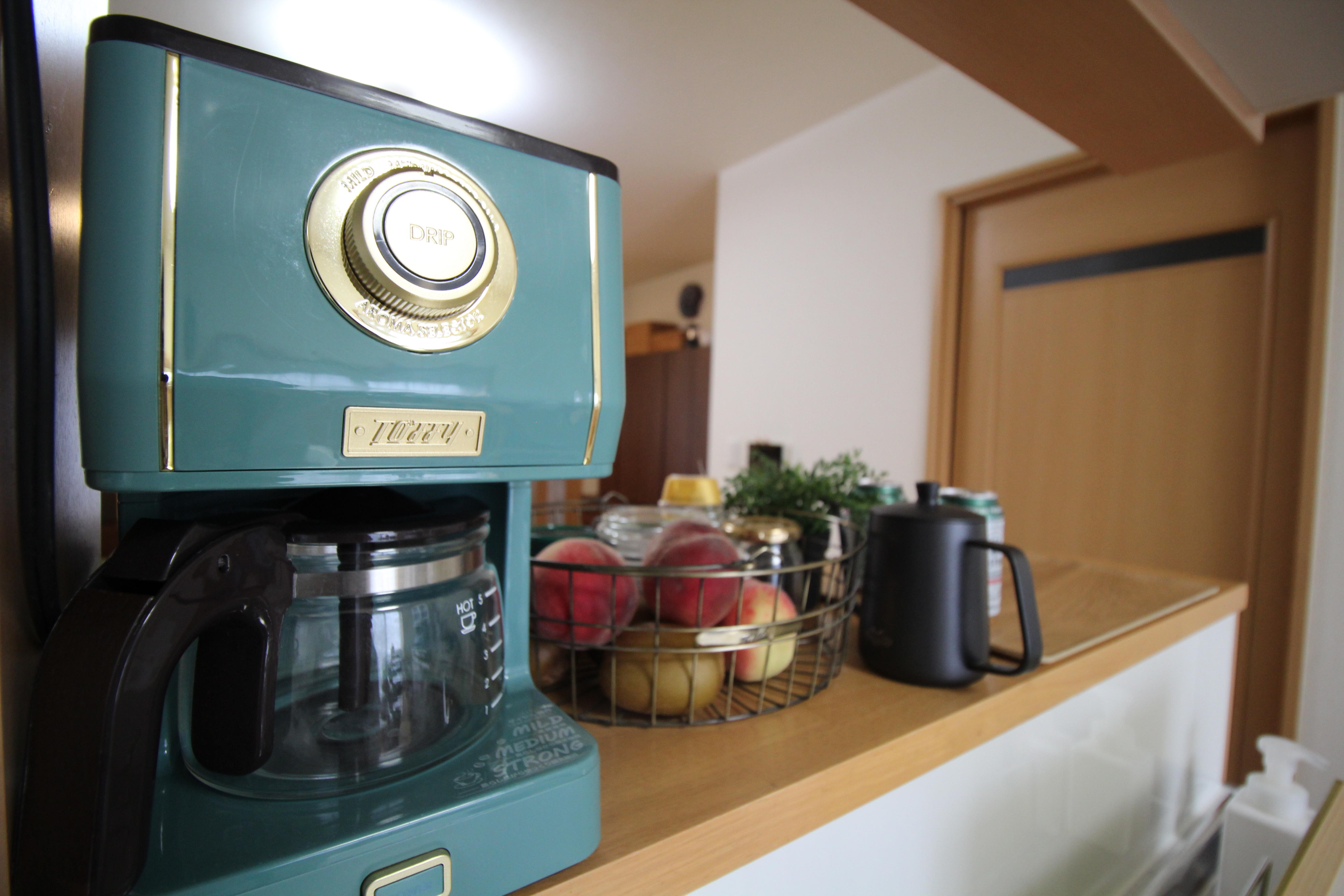 毎日の日課のコーヒーには欠かせない機械はキッチンカウンターが定位置。そのため近くにコンセントを設置(他写真参照)。機械類の多いキッチンは、コンセントの位置はとても重要です。リフォーム検討の際は「コンセント位置」をお忘れなく!
