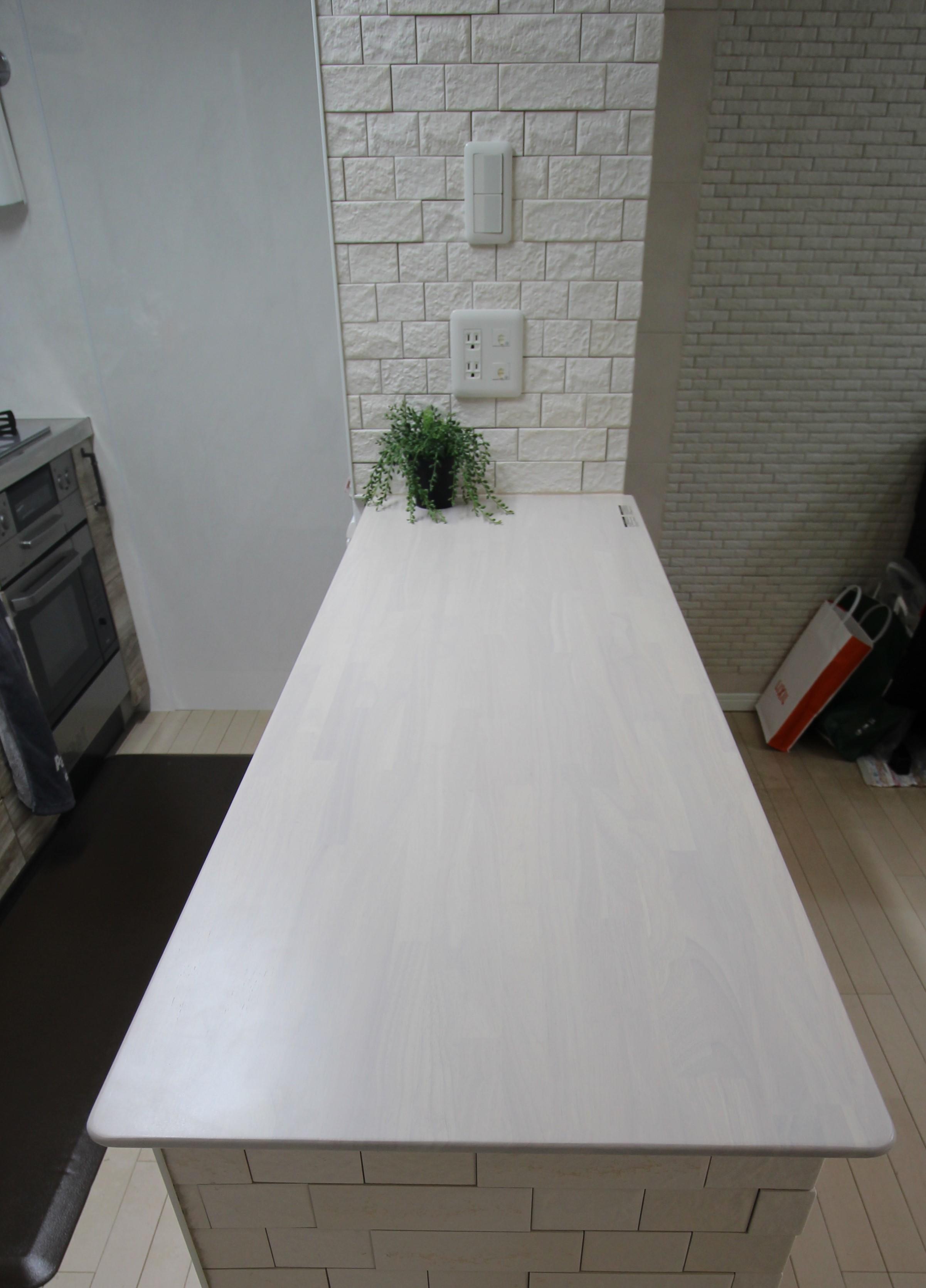 以前は明るい茶色だったキッチンカウンターですが、新たなカウンターはホワイトオーク色を選択。キッチンダイニングとの統一感がUPしました。もちろんキッチン廻りということで板は耐水性。これ大事!キッチンカウンター:Panasonic インテリアカウンター VERITIS 耐水集成タイプ (色)ホワイトオーク