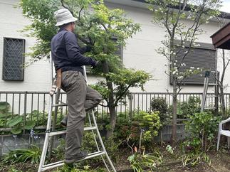 トイレ・浴室リフォーム中にお庭もリフォームしたいとご相談を受けました。写真は職人さんが剪定の作業をしているところです。完成が楽しみです。