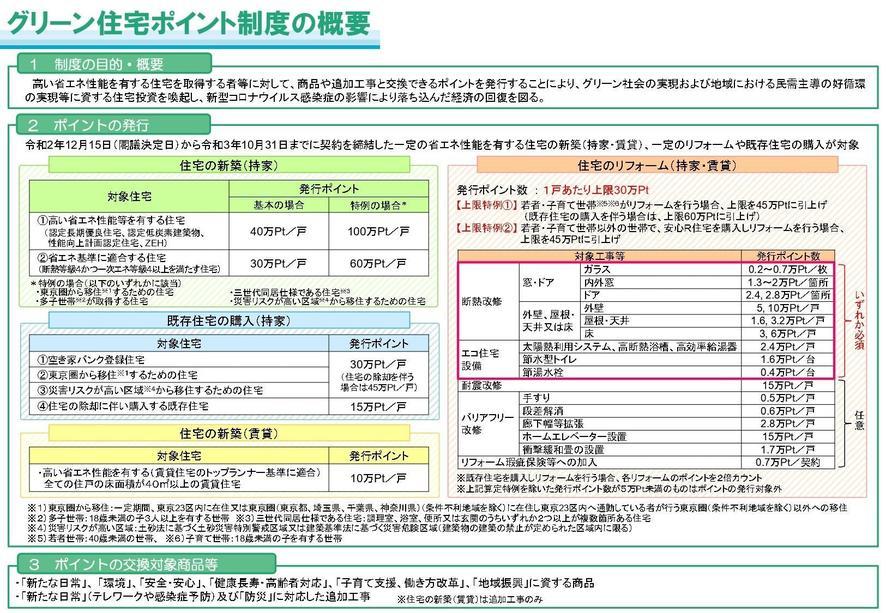 グリーン住宅ポイント制度が創設されました(2020年12月15日)!