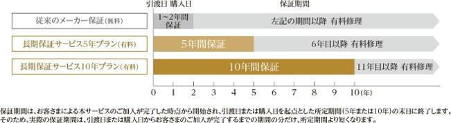通常2年間のメーカー保証を商品引渡し日から最長10年間、末永く安心してご利用いただける有料の保証サービスのこと。※1