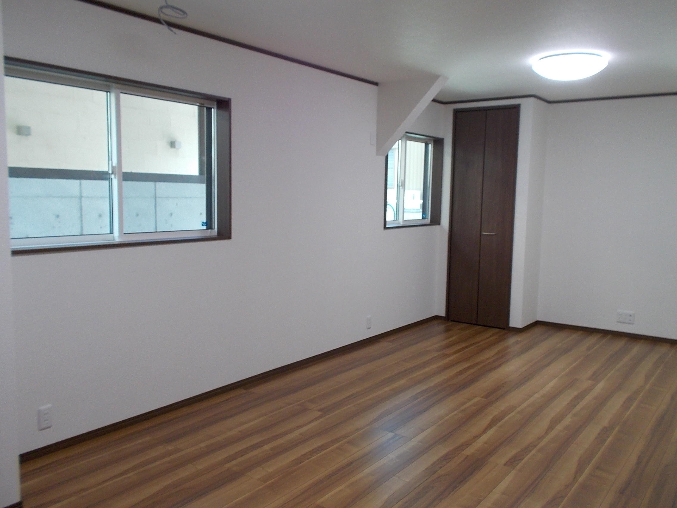 物置スペースをLDKとして新設しました。この他にエコキュート設置工事、2F洋室改装工事もしています。