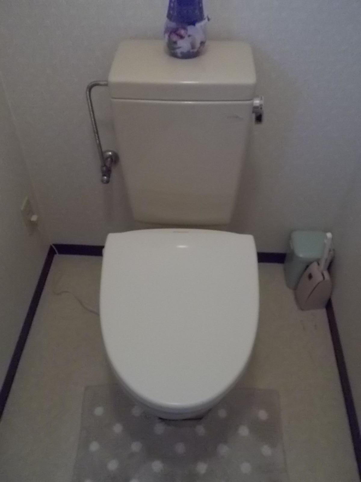 トイレ便器が古くなり、トイレの便器の取り替えを行いました。 同時に床クッションフロアーの張り替えと手摺の取付も行いました。