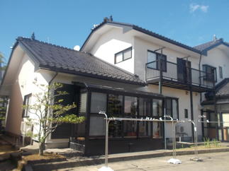 外壁サイディングが古くなり、各所に凍害が見られた為、金属サイディングを上張りしました。 雨樋、軒天、その他外部各所も塗装しました。