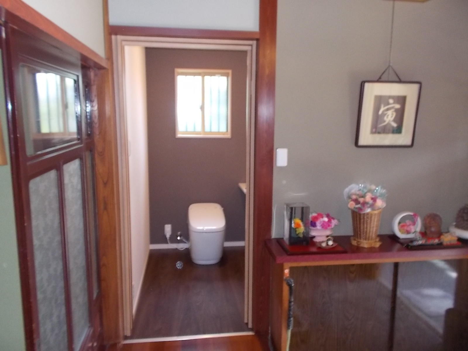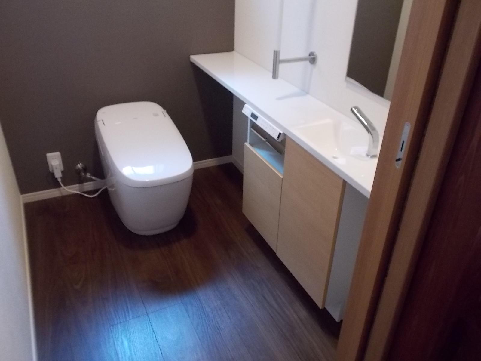 トイレが古く、使いづらい為リフォームしました。 既存トイレの面積が大きすぎる為、間取りの変更を行い、トイレ部分と収納部分に分けました。 出入口は開きドアから引き戸に変更して出入りしやすくしました。 国の補助金を利用しました。