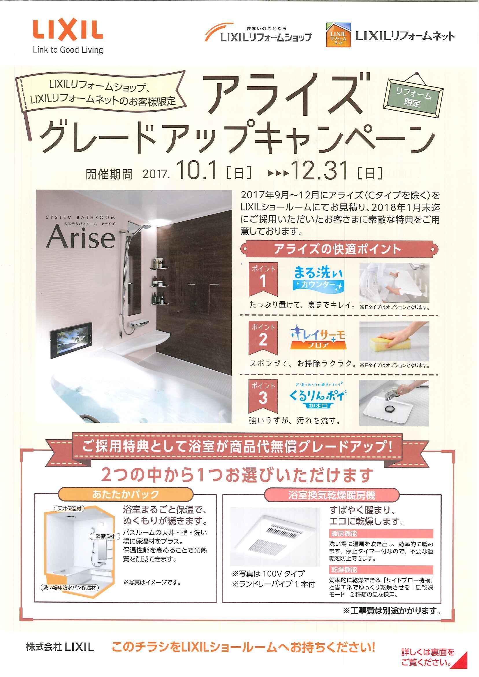 10月1日より、アライズグレードアップキャンペーンを開催致します。