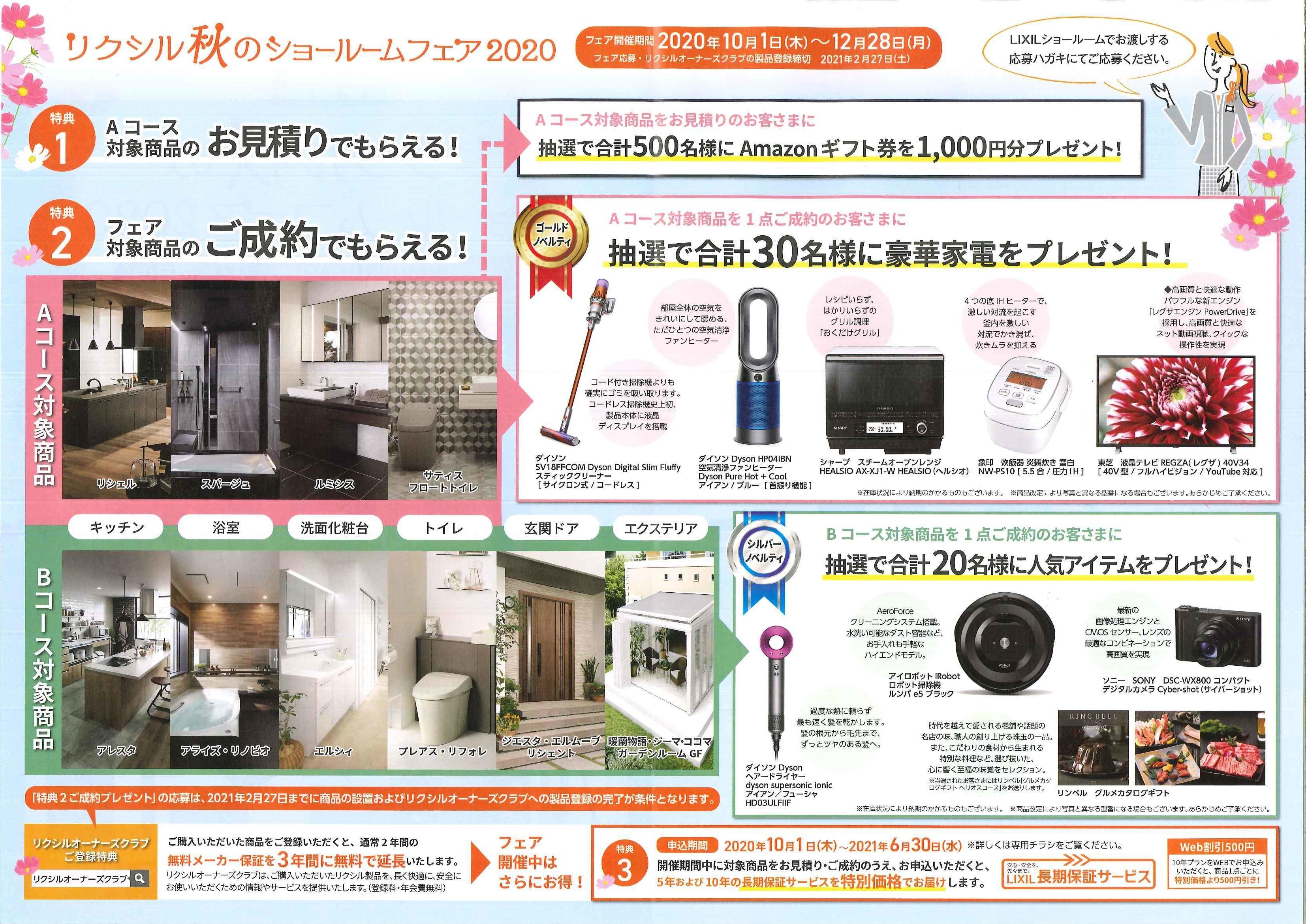 リクシルショールームで対象商品をお見積りのお客様より抽選でギフト券。