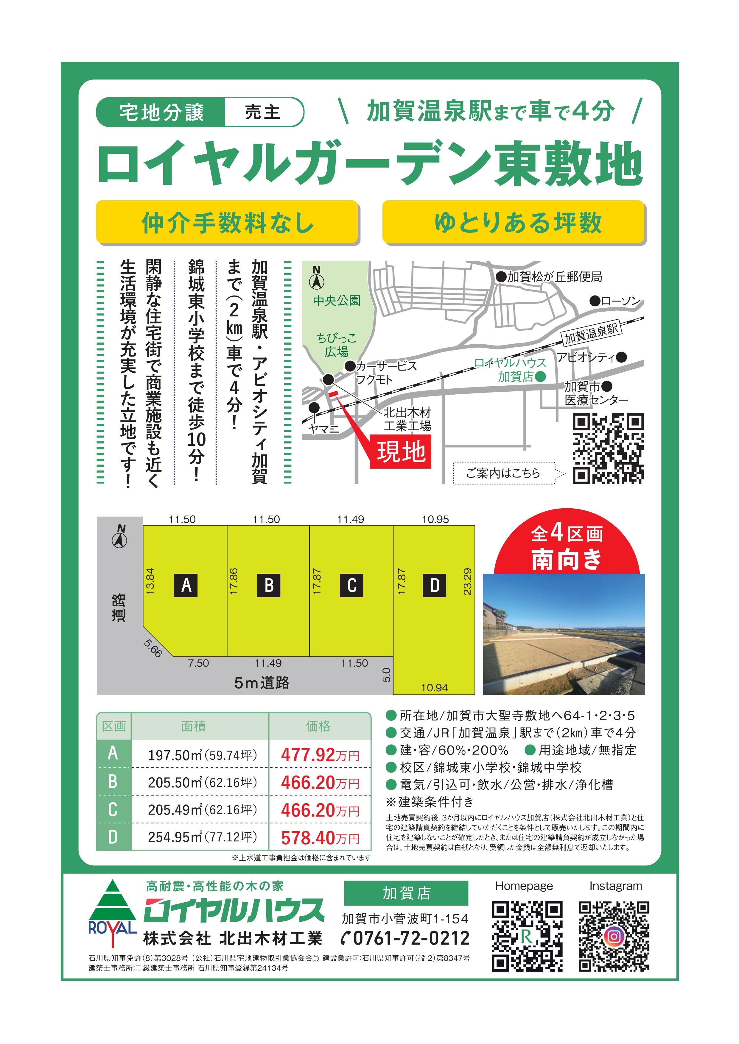 この度、新築部門より加賀市敷地にて宅地分譲を販売しております。