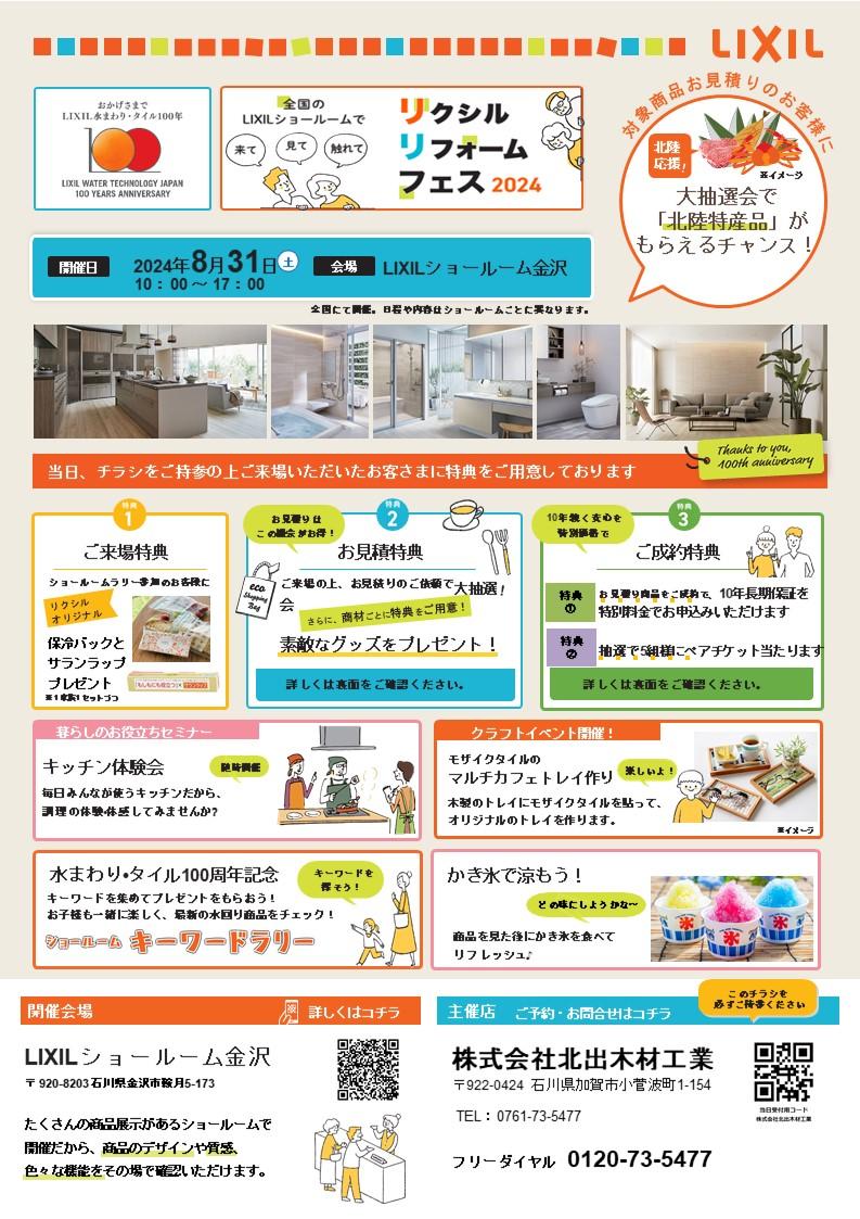 LIXILショールーム金沢では、8月31日(土)10時~17時