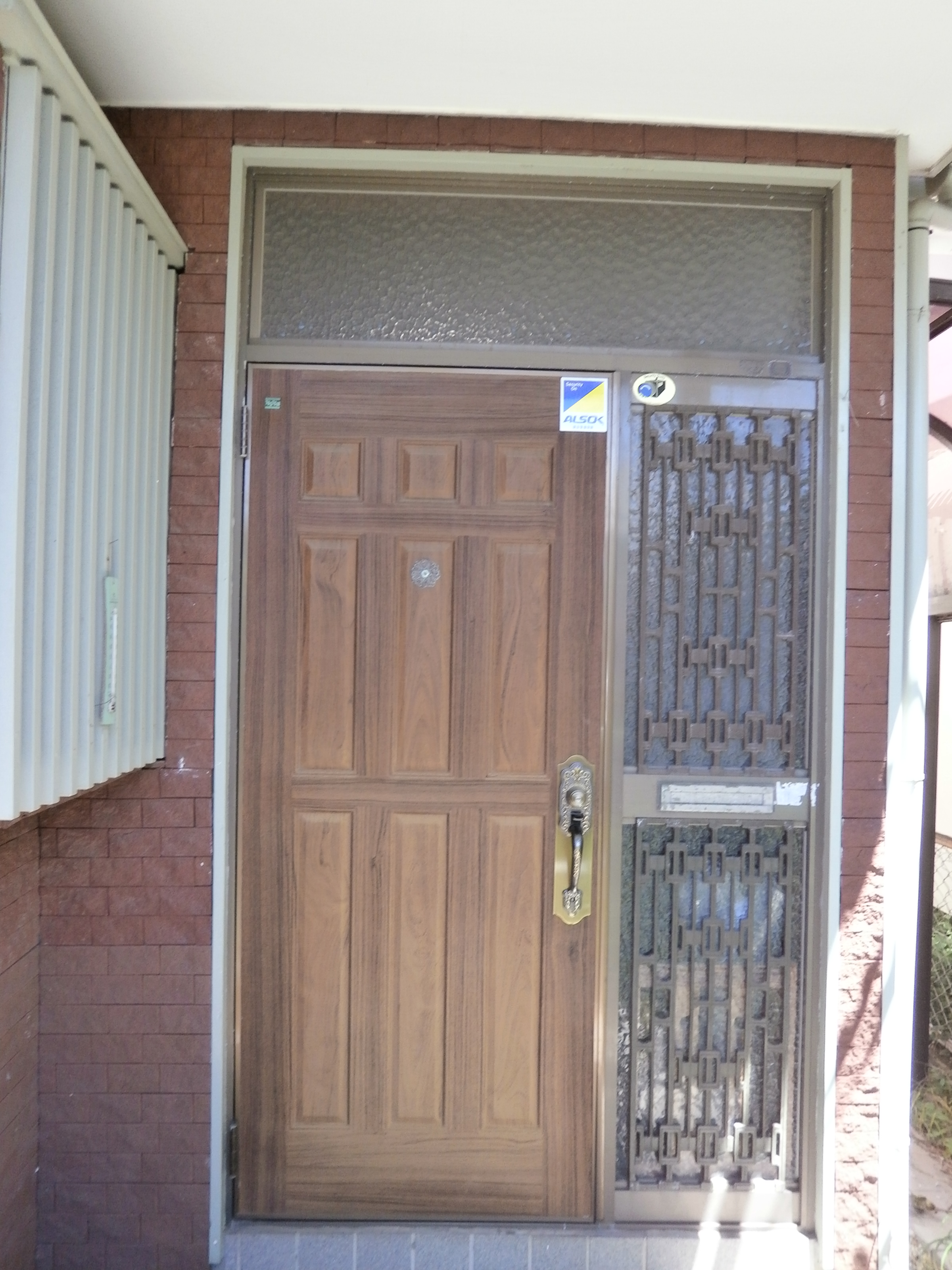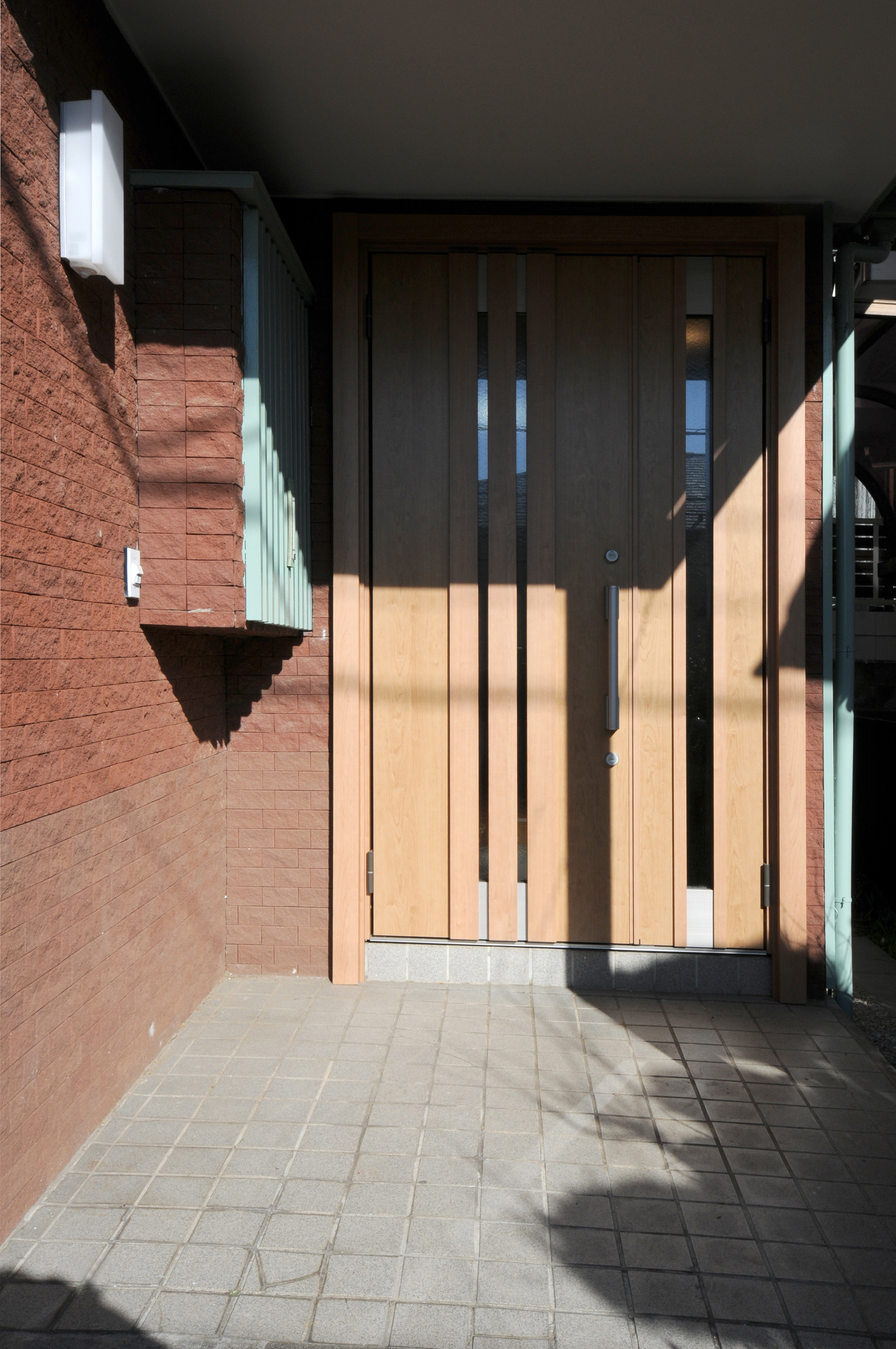 玄関ドアをLIXILリシェントに新設しました。リフォーム前のドアの色、テイストを尊重した仕様を選び、リフォーム後の外観を前と違和感のないデザインにしました。茶色のタイルにとても良く調和しています。
