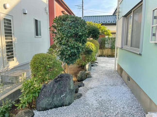 ご高齢なため草刈りも困難で、ジャングルの様なお庭になっているとのことで、今回ガーデンスペースのリフォームさせていただきました。