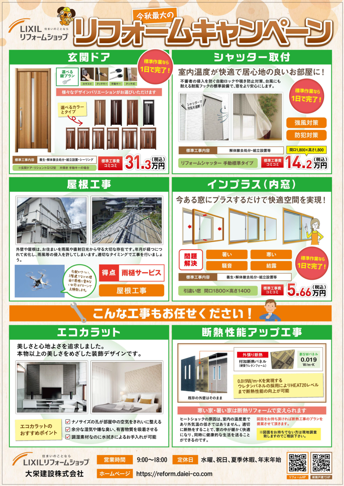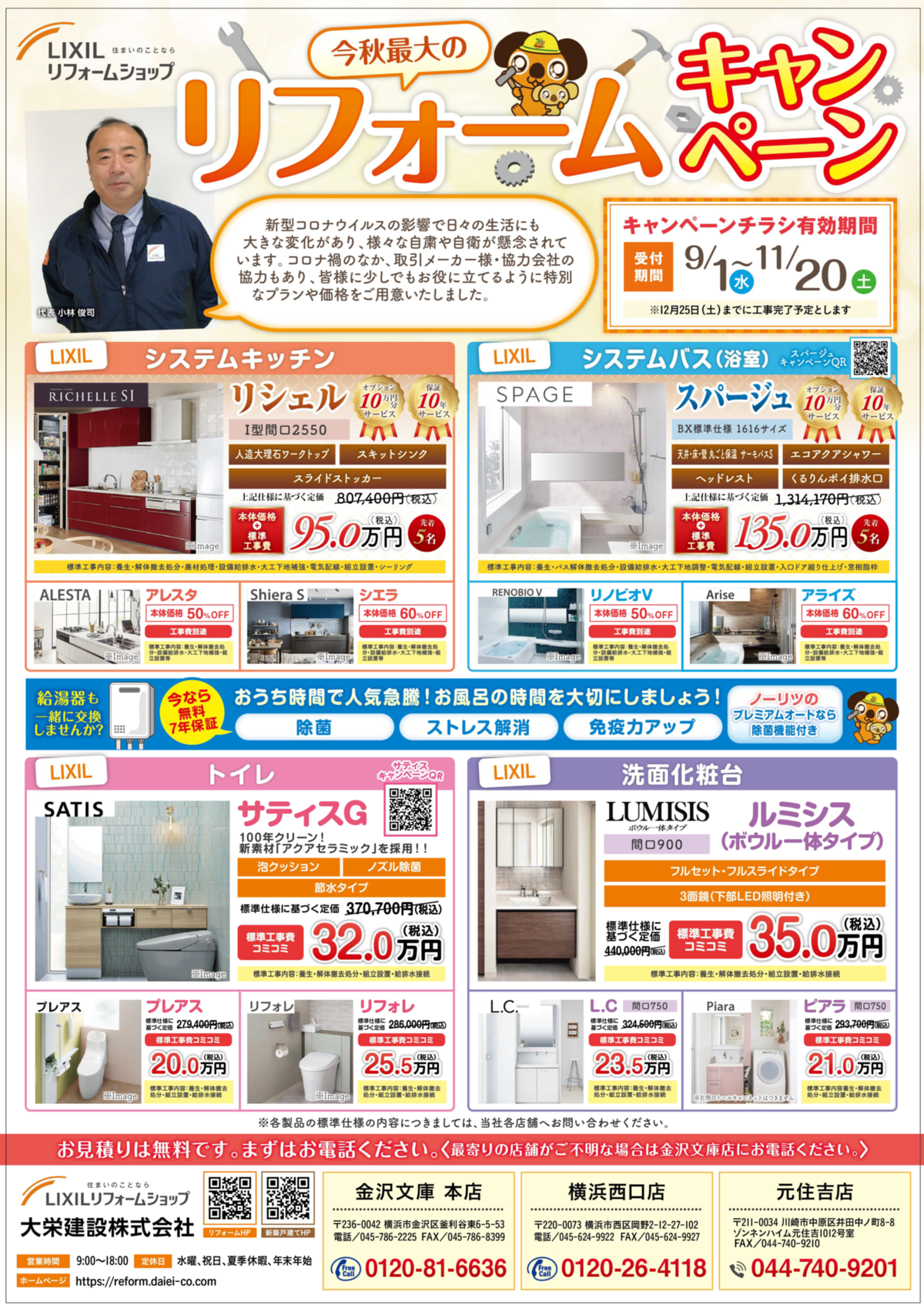 開催期間は 9/1(水)~11/20(土) です。(※ 12/25(土)までに工事完了予定)