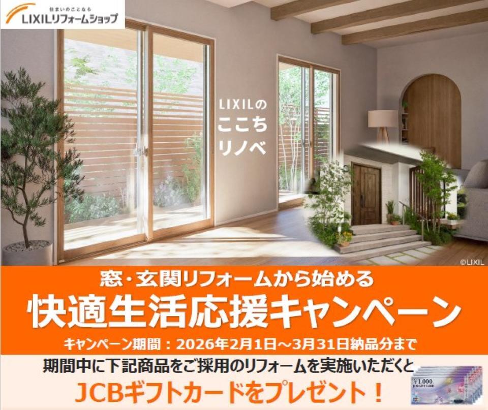 1窓ご採用ごとにJCBギフトカード2,000円プレゼント!