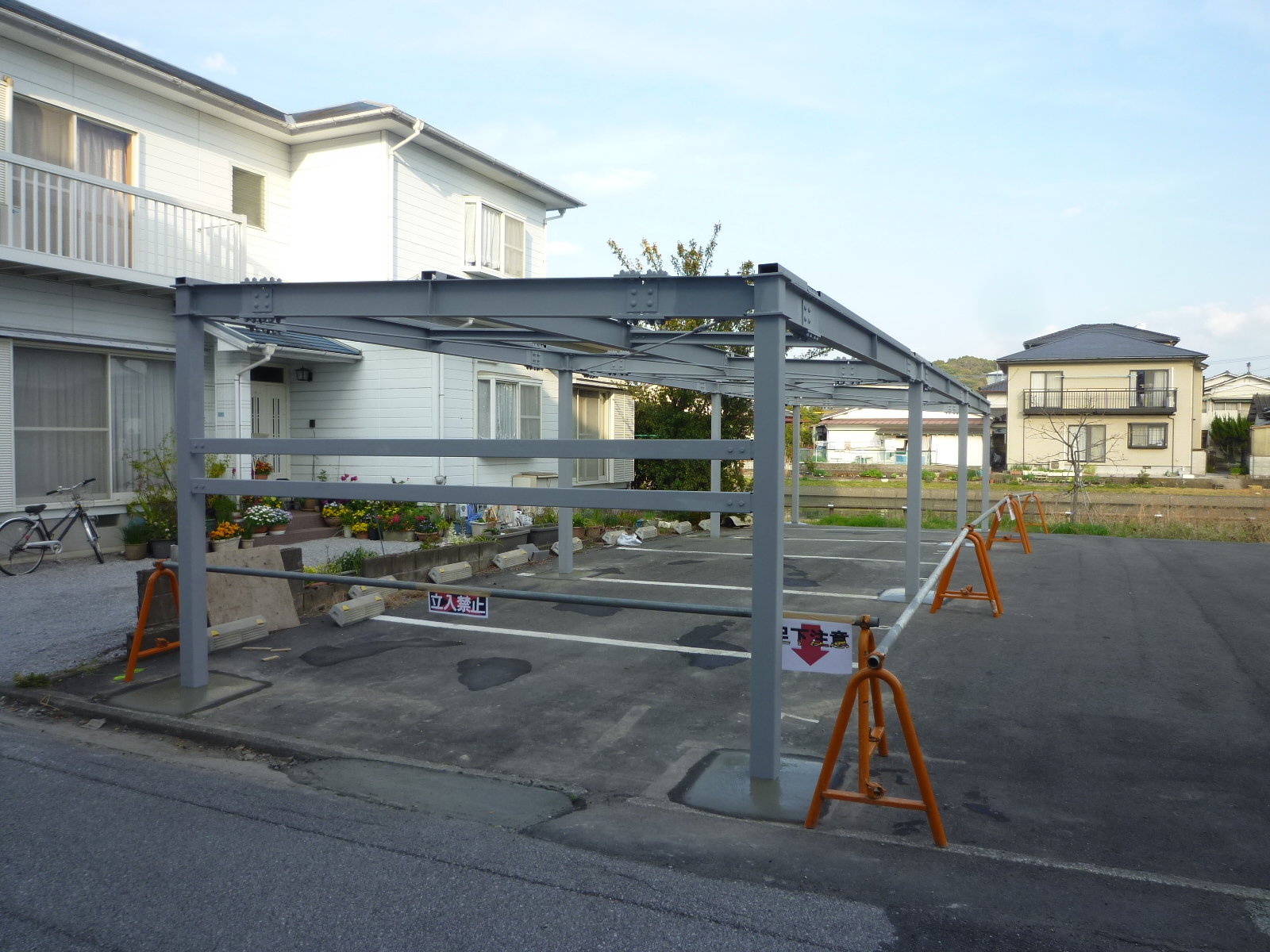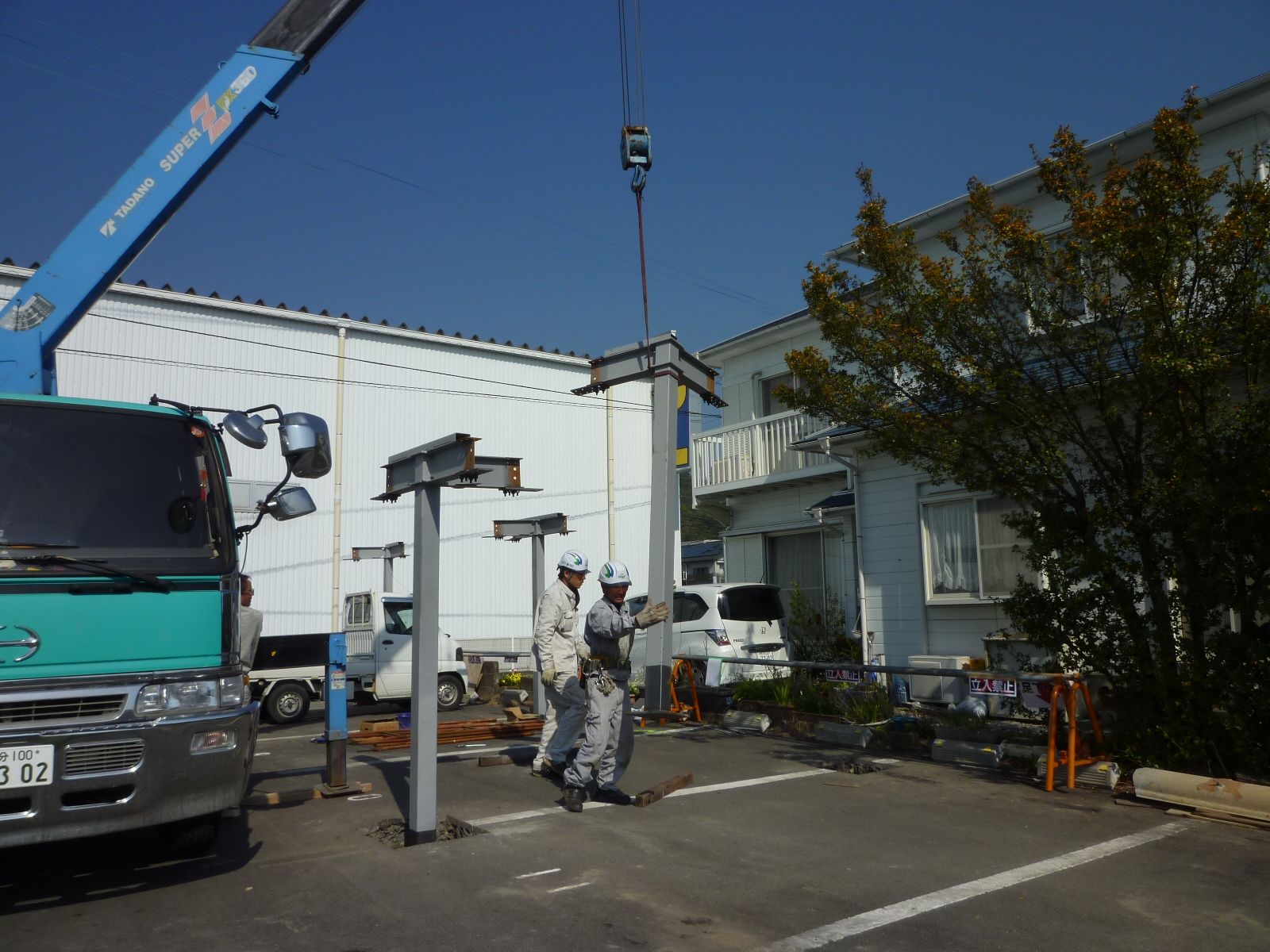 鉄骨で車庫を新設して、屋根に太陽光発電(10.45kw)を設置しました。
