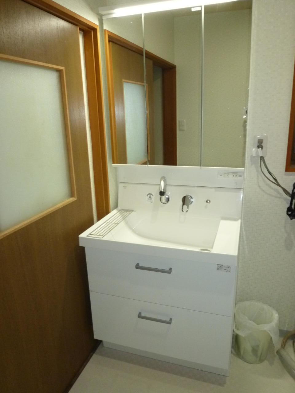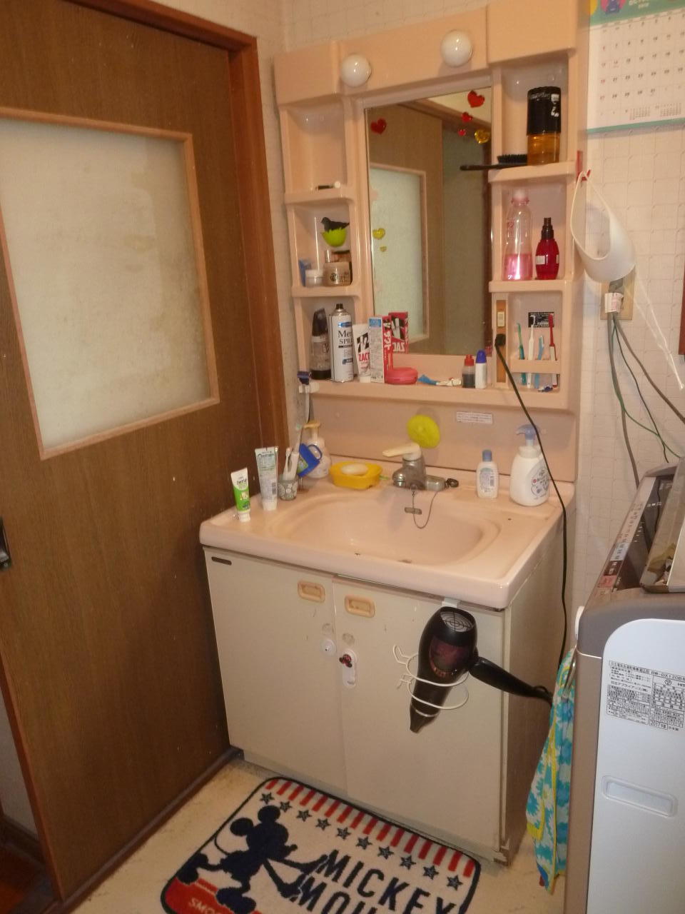 物が丸見えだった洗面化粧台。家族みんなで使うには手狭でした。