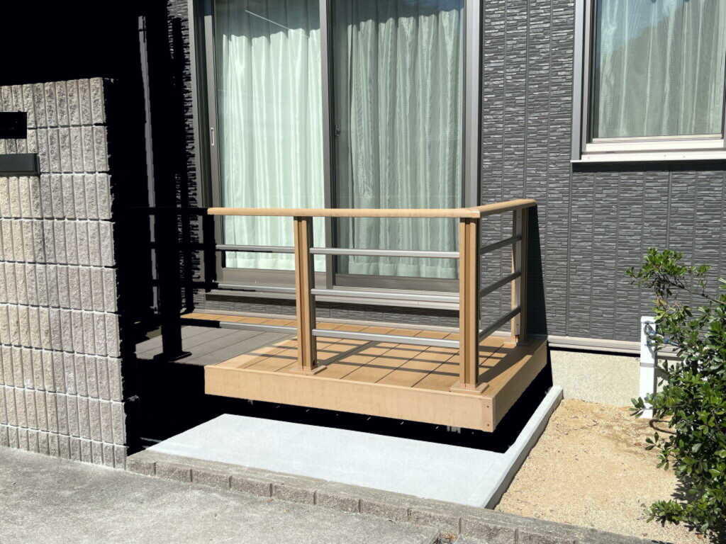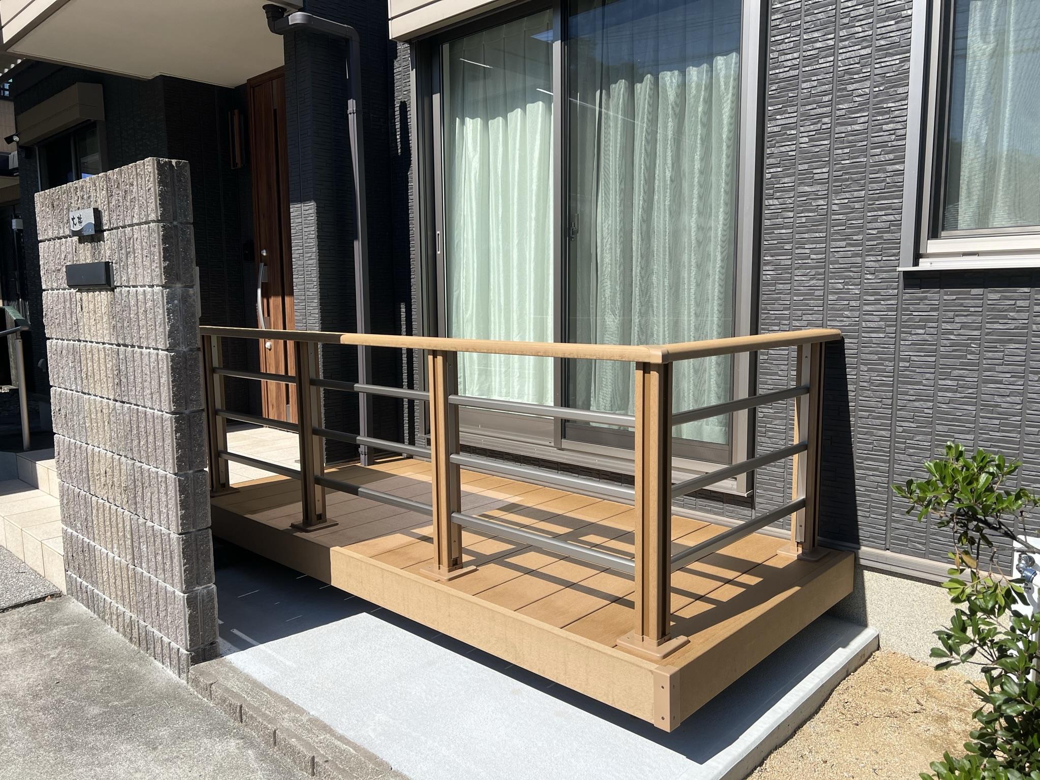 木のデッキは、腐りやすくメンテナンスも大変なので、人工木のデッキ『樹ら楽ステージ』をお勧めし、取り付けることにしました。