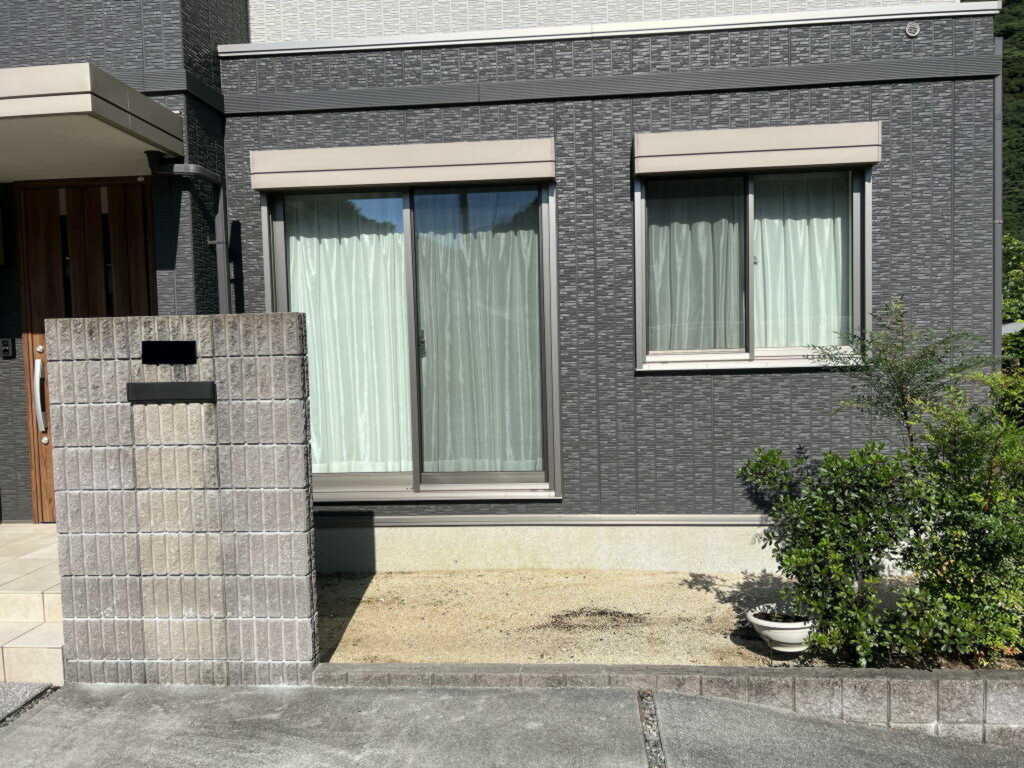 玄関横のリビング前は土の状態で特に何も使っていない場所にウッドデッキを取り付けたいというご希望でした。