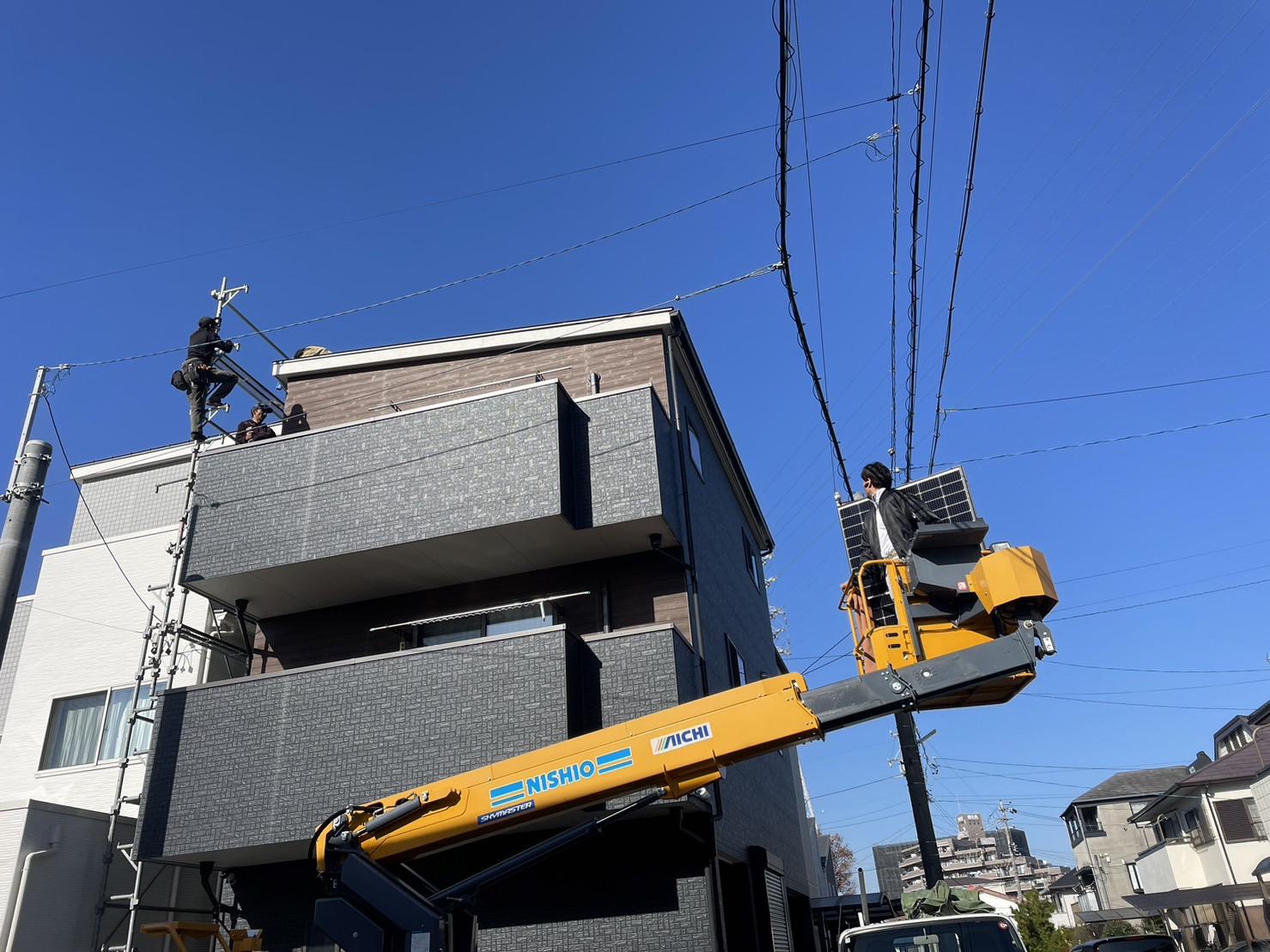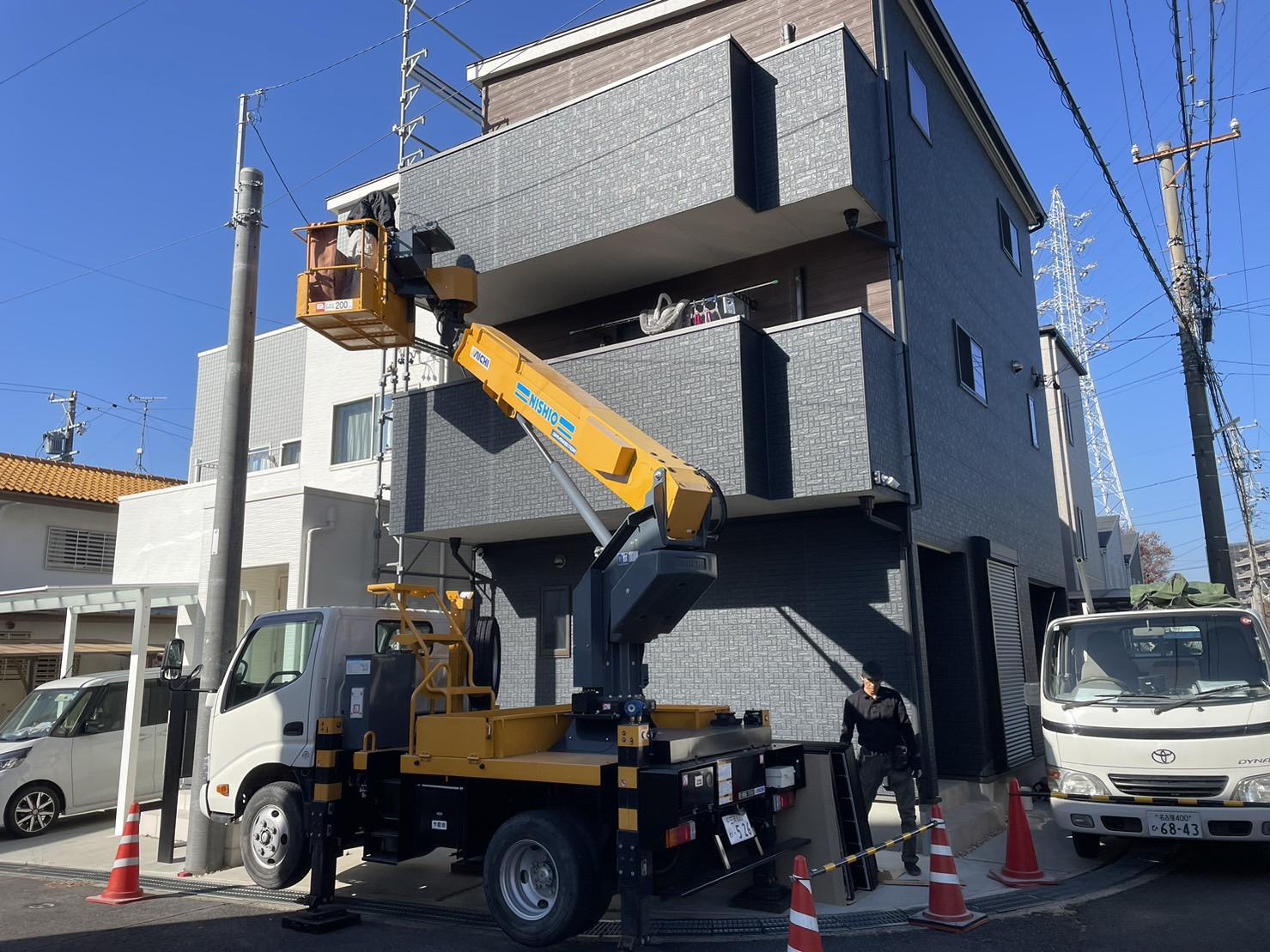 電柱や物件に当たらないように職人技で慎重に操作されていました。