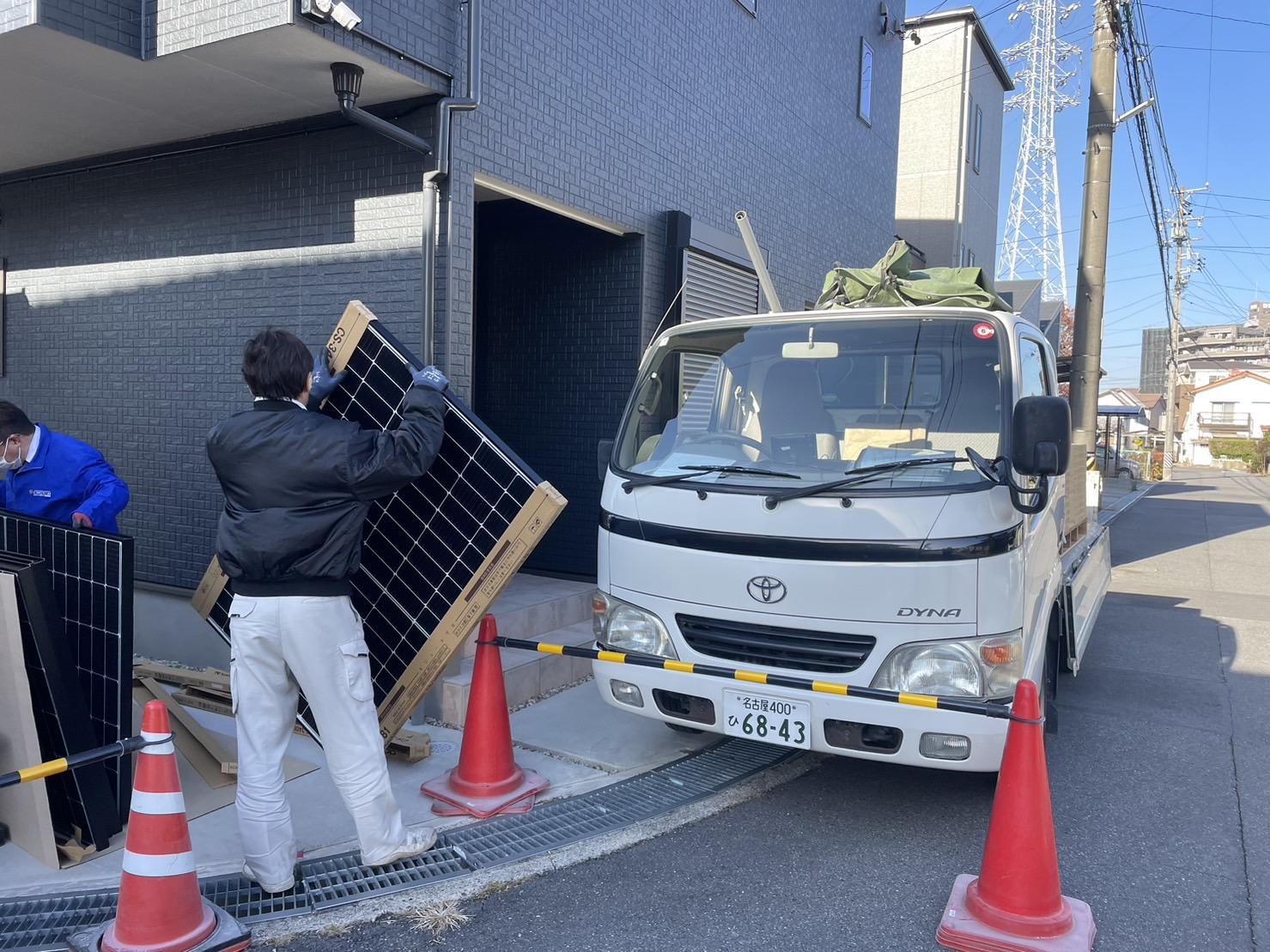 太陽光パネルはこのように1つずつ梱包されて運搬されてきます。