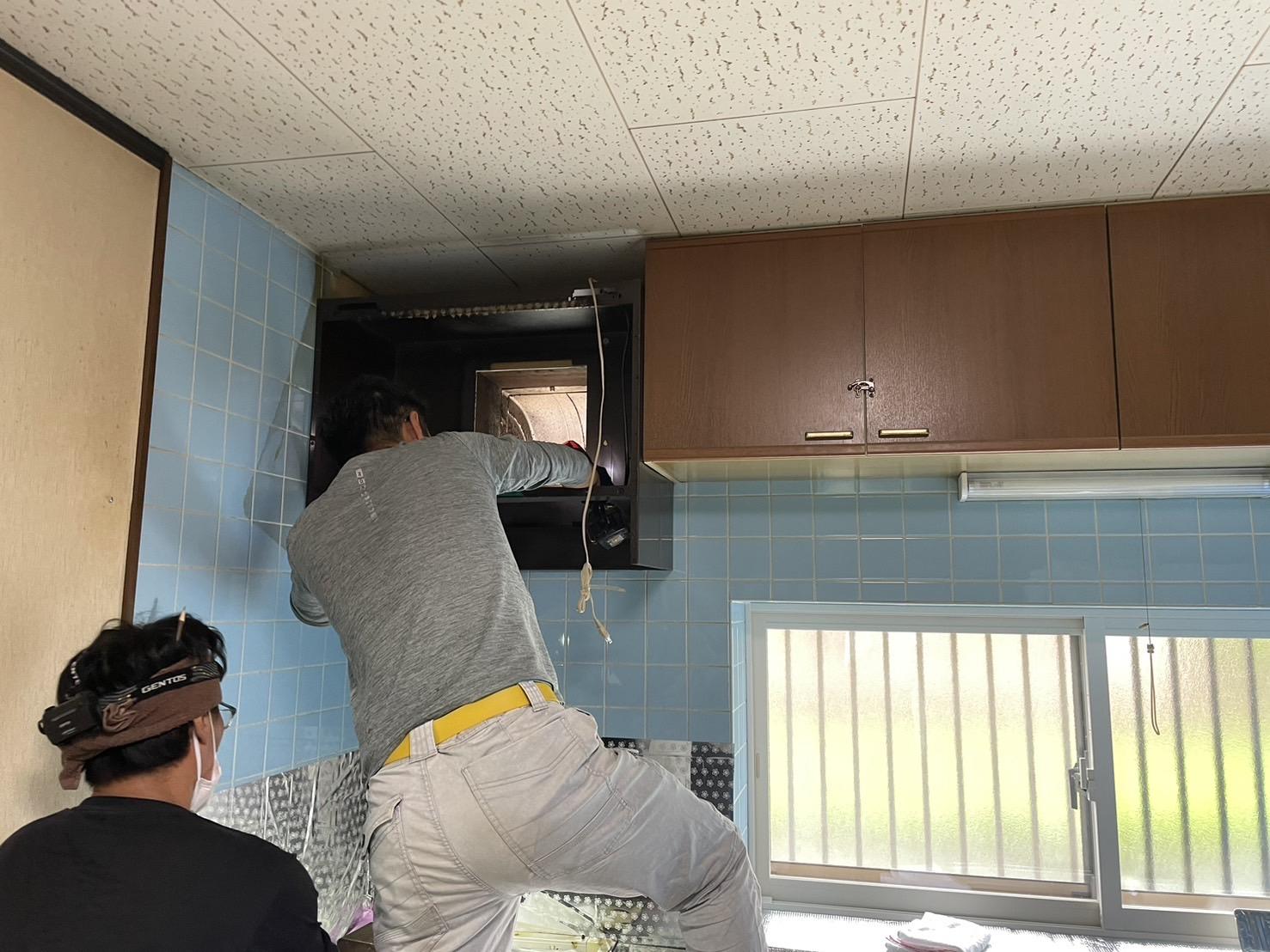これを新しいレンジフード本体と繋ぎ取替完了です!