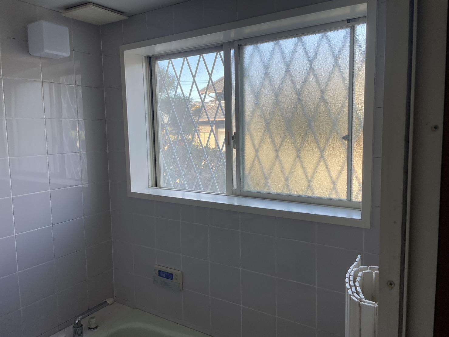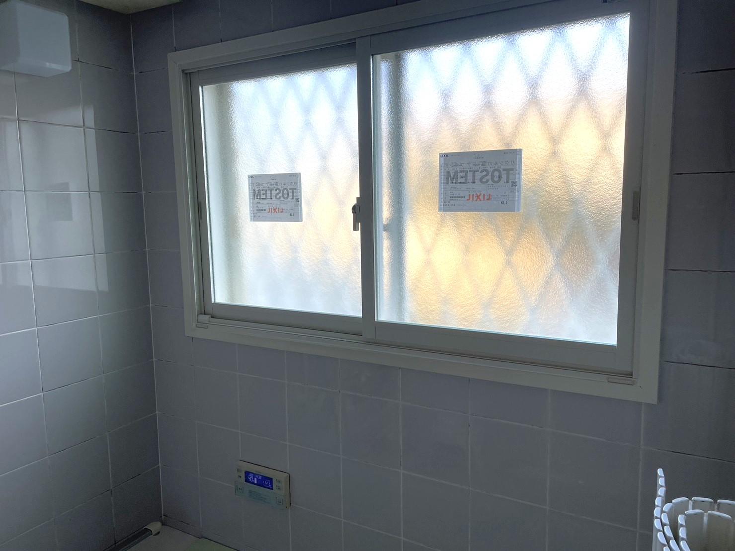 お風呂場がタイル張りのため、冬とても寒いとご相談いただいたので内窓設置をご提案し、お風呂場と脱衣所のインプラス工事を行いました。