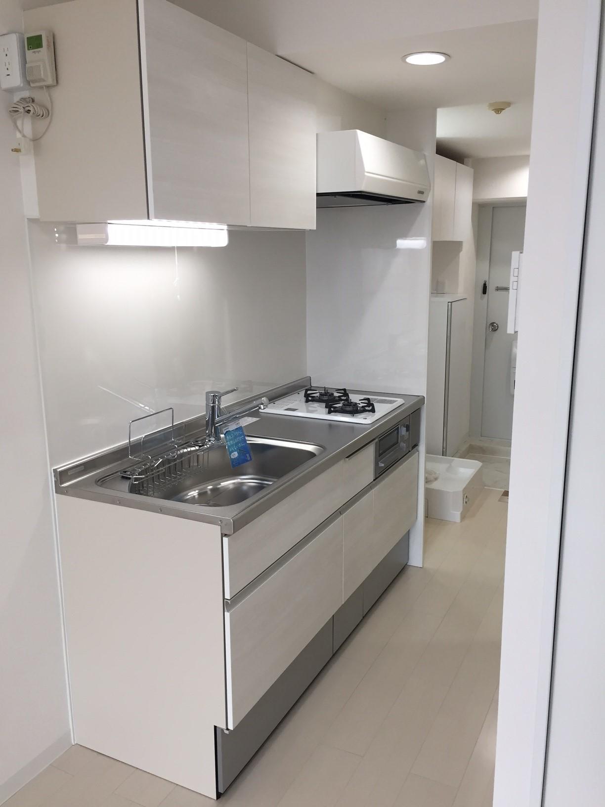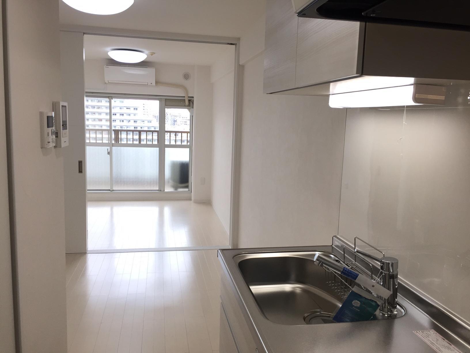 24㎡の1DKで採光がバルコニー側に1箇所しかなく暗いイメージでしたが、全体を白で統一し間仕切扉も採光タイプを採用する事により明るく仕上げる事が出来ました。
