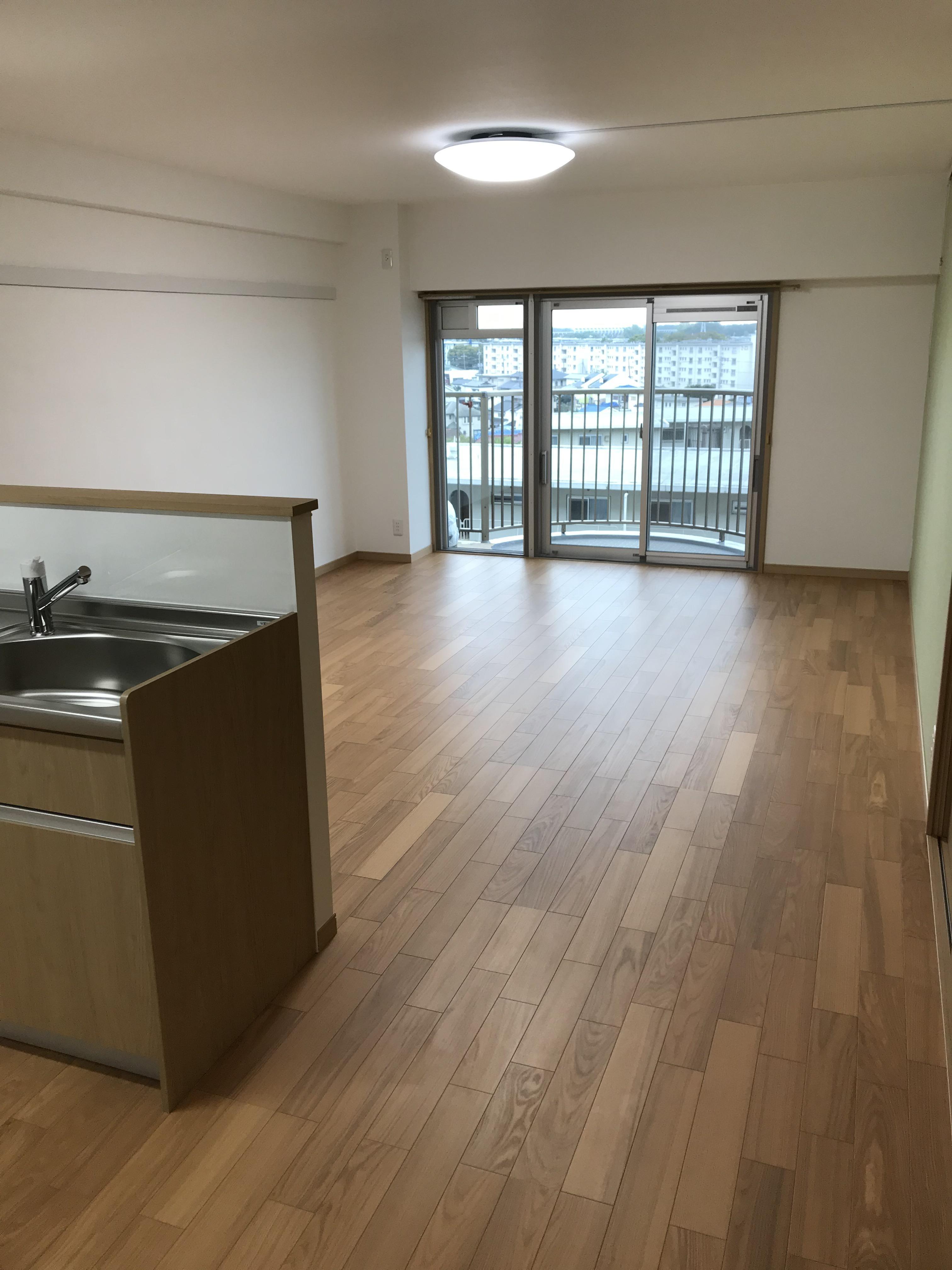 築47年のマンションをリノベーション、各部屋の段差が多かったので段差を解消し 対面キッチンを設置して開放感のある空間にしました。