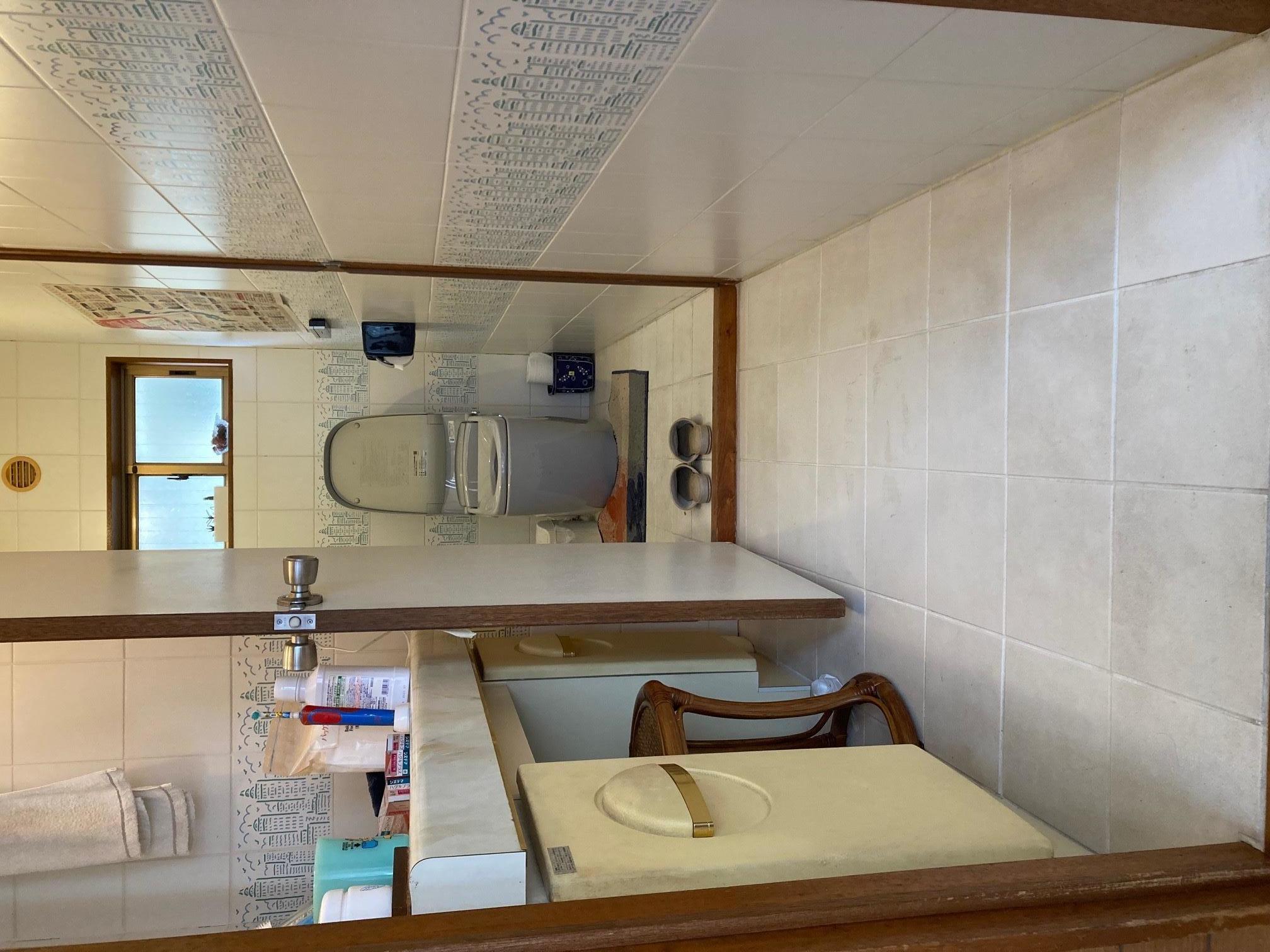 洗面台や内装の老朽化、洗面所・トイレ入口の段差、車いすでの利用は難しい・・・