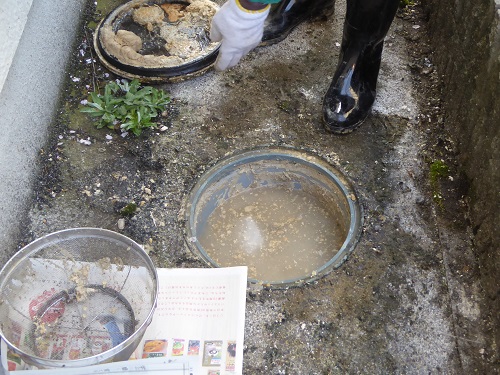 そんな、こんなで、コチラは下水のゴミよけ枡のお掃除です。