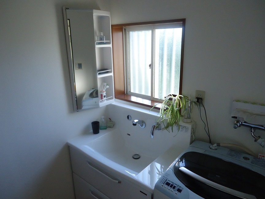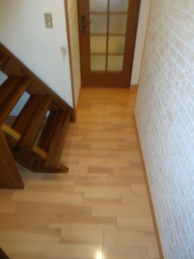 当初は洗面台を入れ替えるだけでしたが、トイレも改修したい!廊下の床も変えたい!と奥様の要望をお聞きいたしましたので全て取り入れることにしました。 洗濯機や既設で取り付けてあったミラーを退けるとクロスが敗れているヶ所がチラホラ・・・せっかくなので壁面すべてクロスを張り替えいたしました。(サービスの一環です) トイレ空間にはホーローパネルやビニルタイル等掃除しやすいものを選択しておりますので、これからの掃除が簡単になると思います。 ホールや廊下・洗面所で使用したフロアーは奥様がリビングと同様のものにしてほしい!と要望がありましたので、寸法等を調べ探し出しました。なんとかフロアーが見つかったのでお施主様も大喜びでした。
