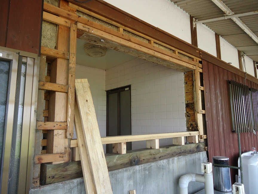 壁補修工事!!外壁の焼き板が落ちたとの連絡があり、行ってみると下地の部分から腐ってました。
