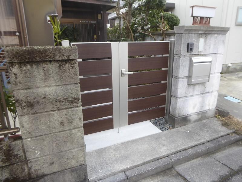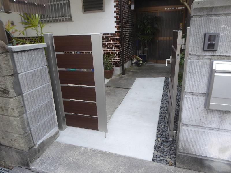 以前、ワンコイン点検キャンペーンを行った際にご縁があった水口町のY様。今回、3つのご希望を承りました。まず1つ目は古くなってすでに取り外されていた門扉のリニューアルです。年月は経過していますが風格ある門塀に見劣りしないように、また和風の外観にマッチするように木目シートを使ったアルミ門扉をご提案しました。2つ目は古くなって裏蓋が割れてしまったポストの交換、3つ目は飛び石状になったアプローチのフラット化です。安全に通行していただけるようになったとともに、降雪時の雪かきが容易になったのもポイントです。