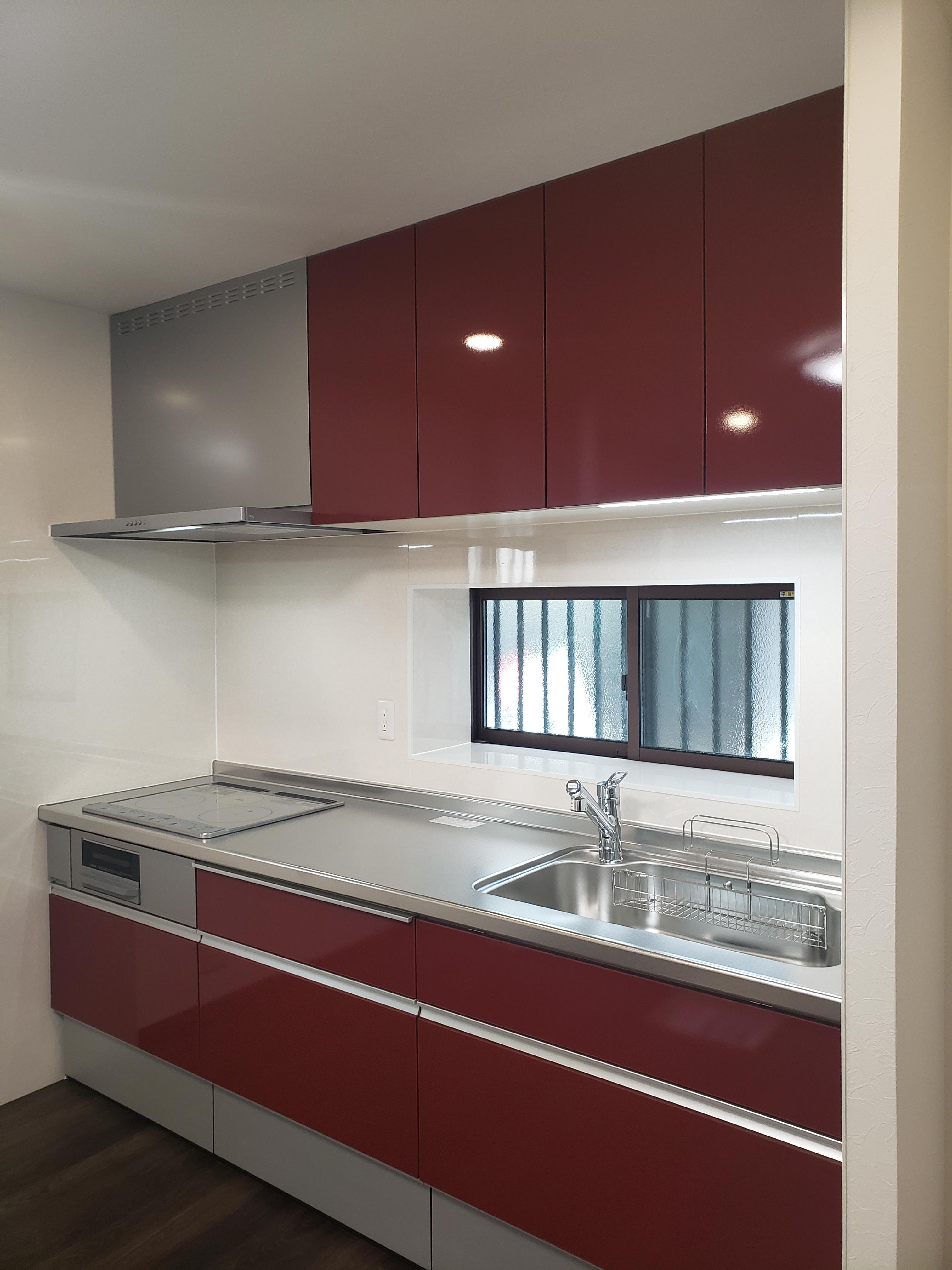 L字だったキッチンは壁付けキッチンにすることでキッチンダイニングがスッキリとしました。