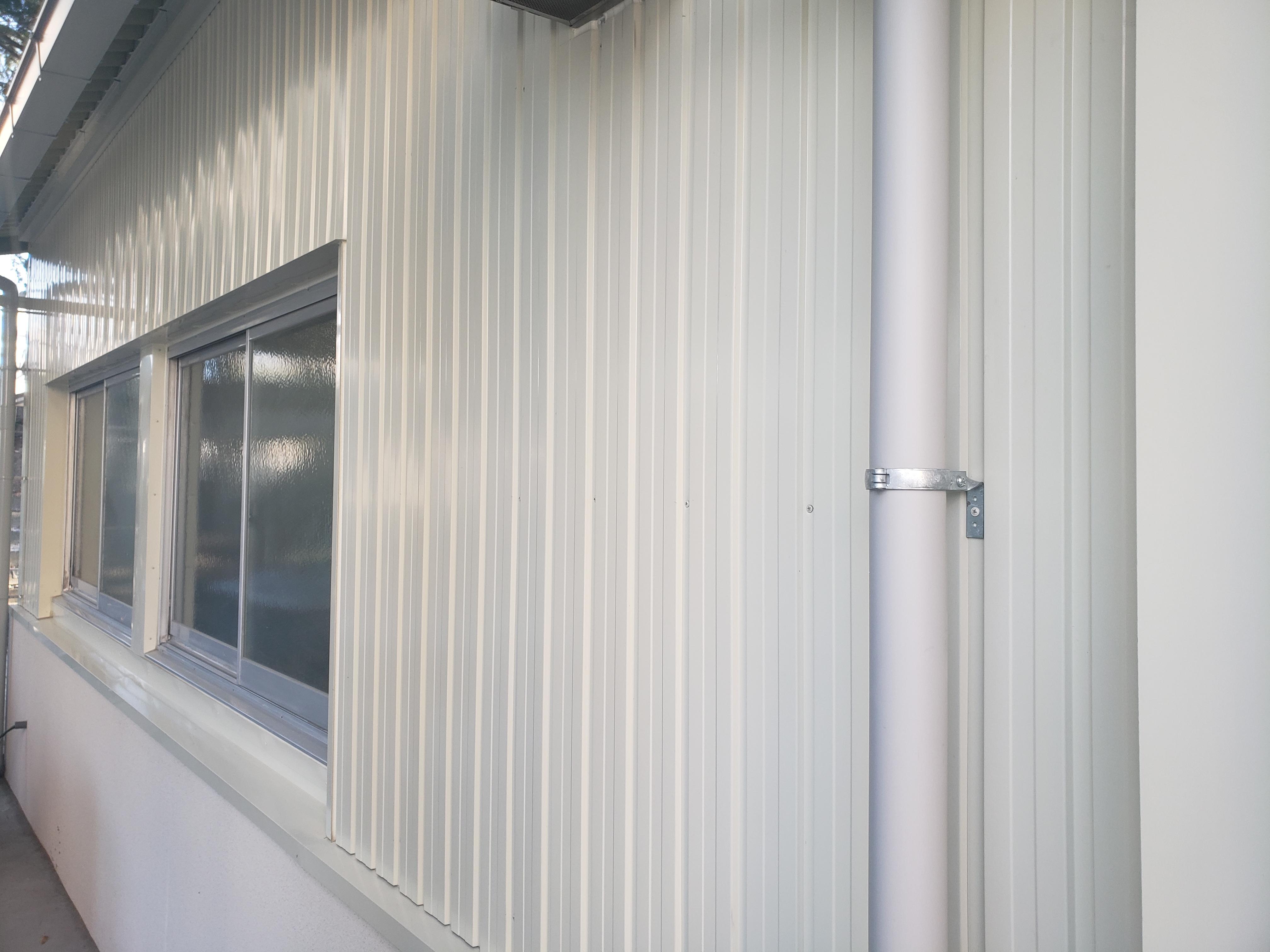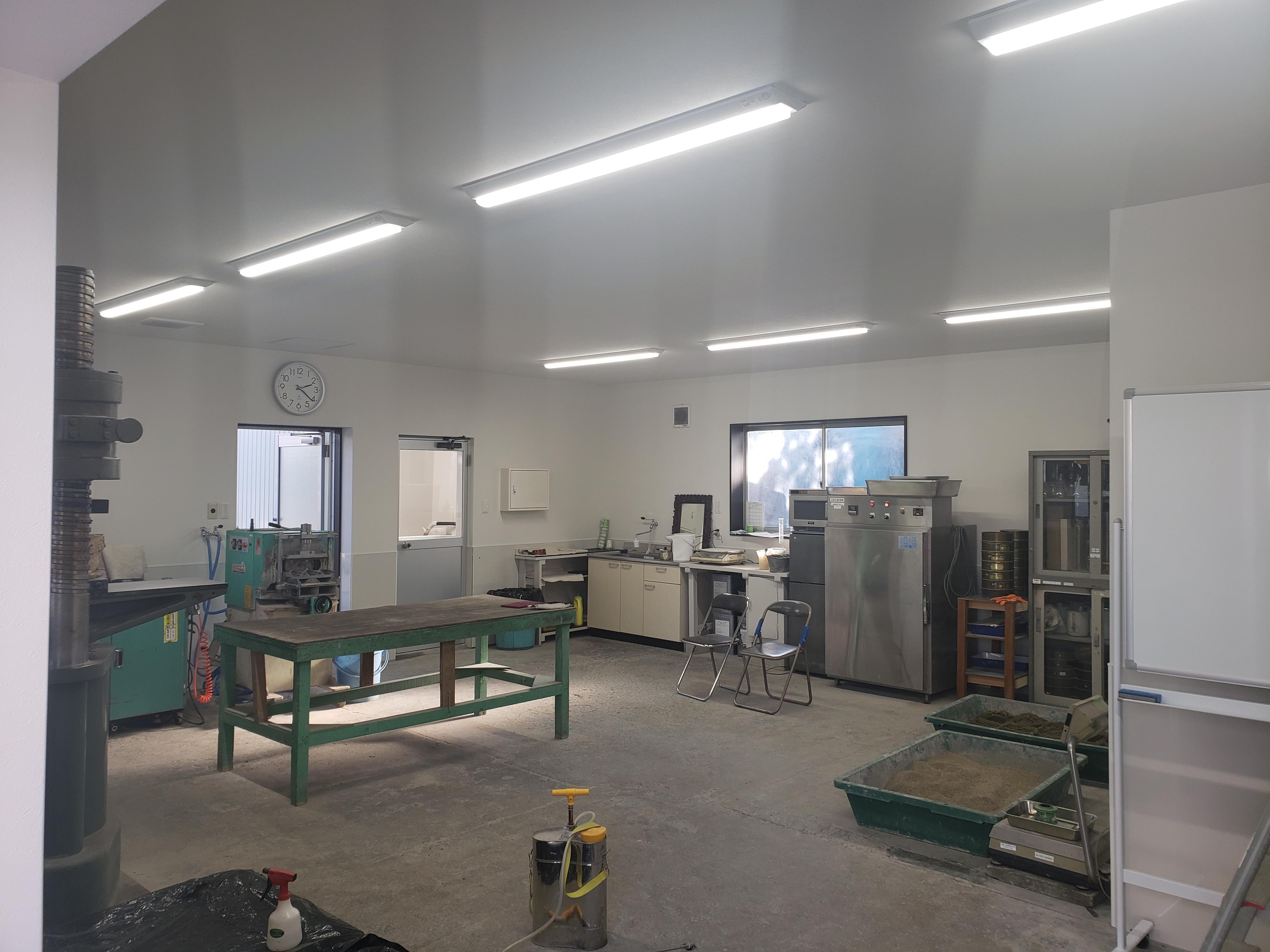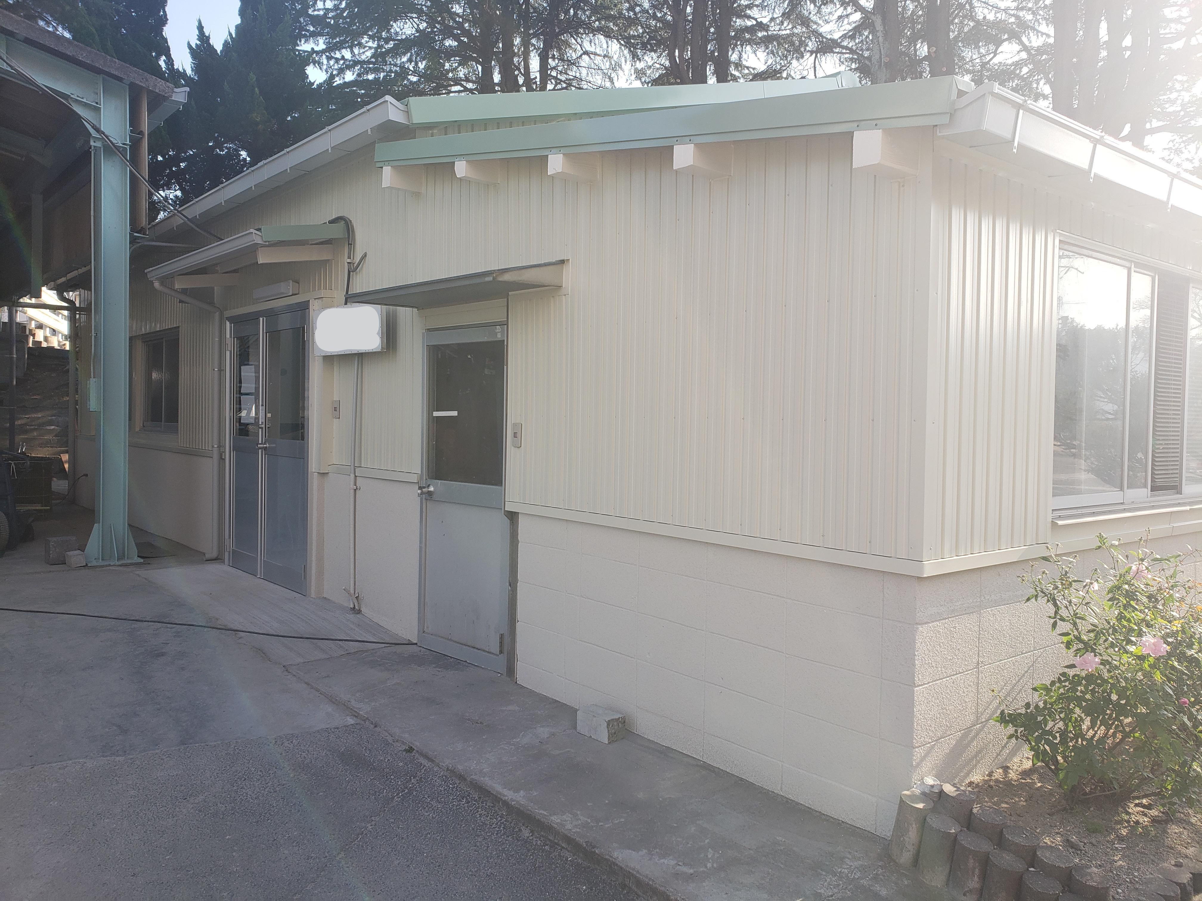 傷んでいた外壁や樋を改修して清潔な社屋になりました。内部のクロスも改修し、汚れても掃除しやすい腰壁を設置しました。照明はLEDにすることで部屋も明るく作業しやすくなりました。