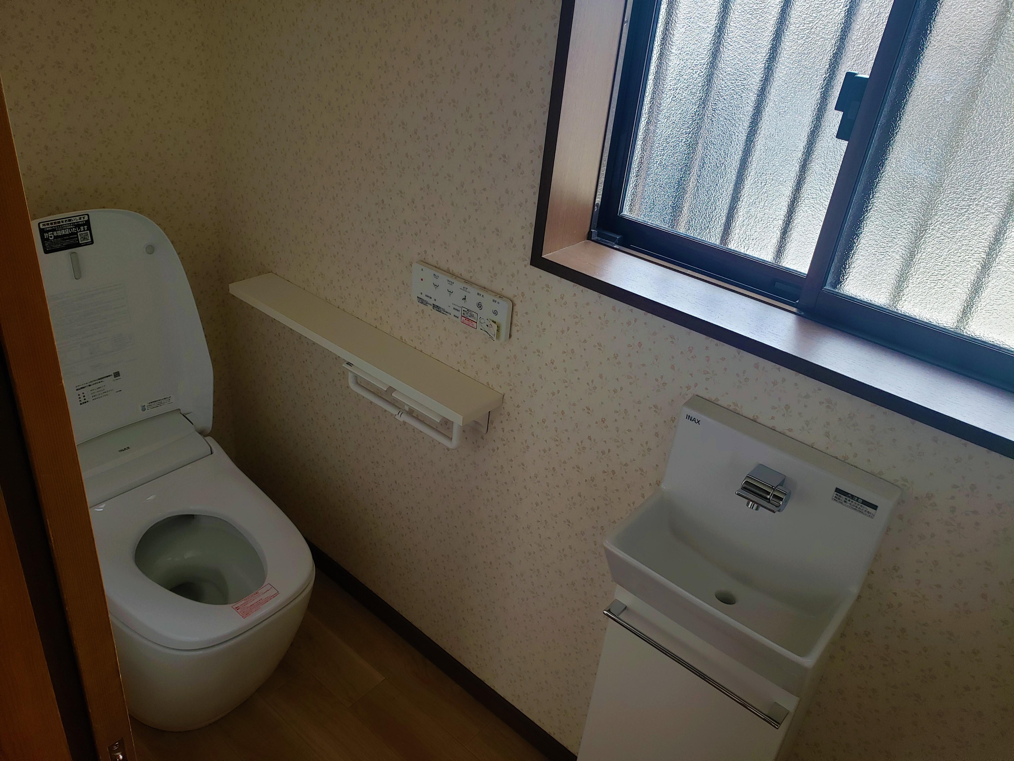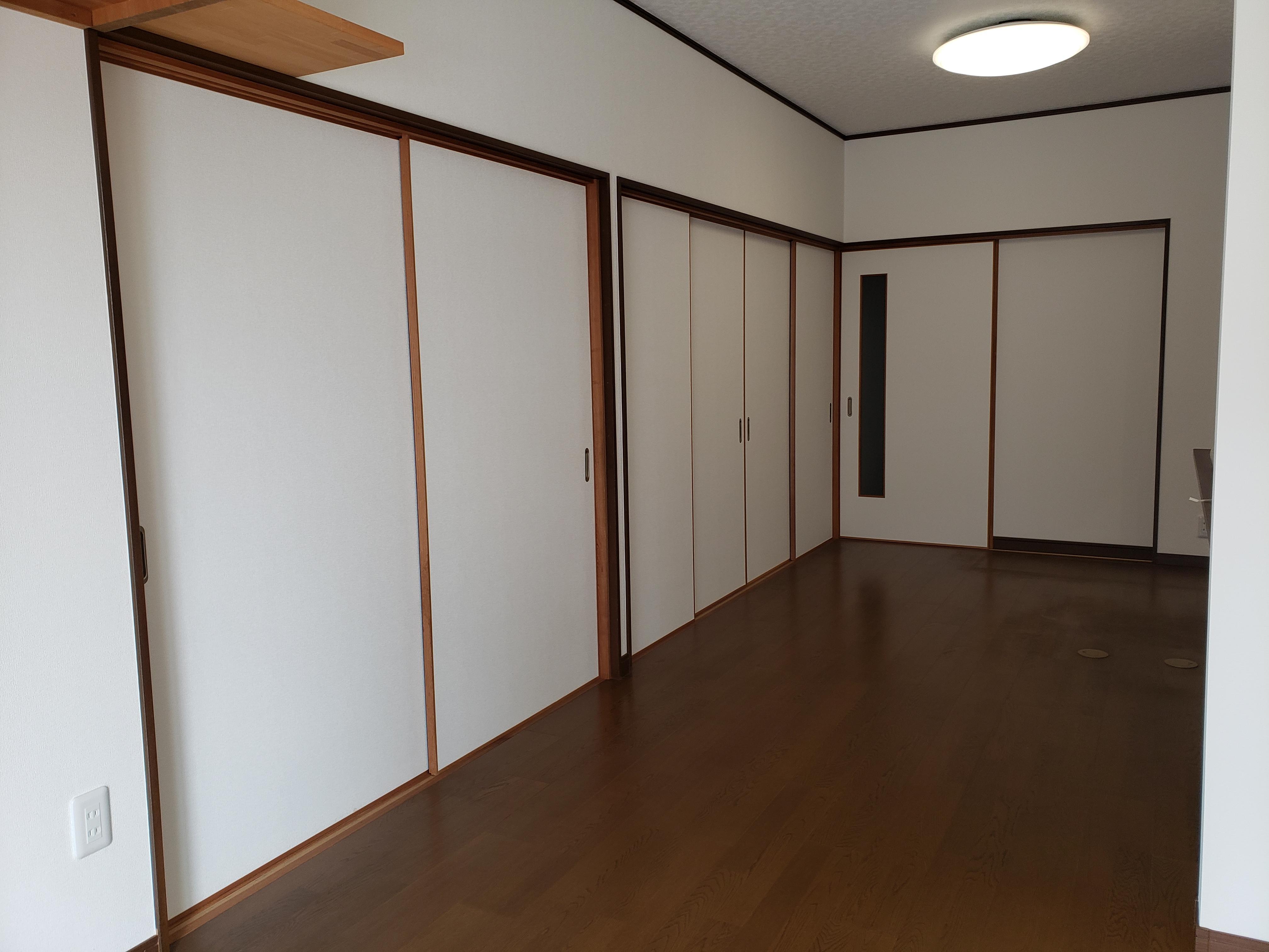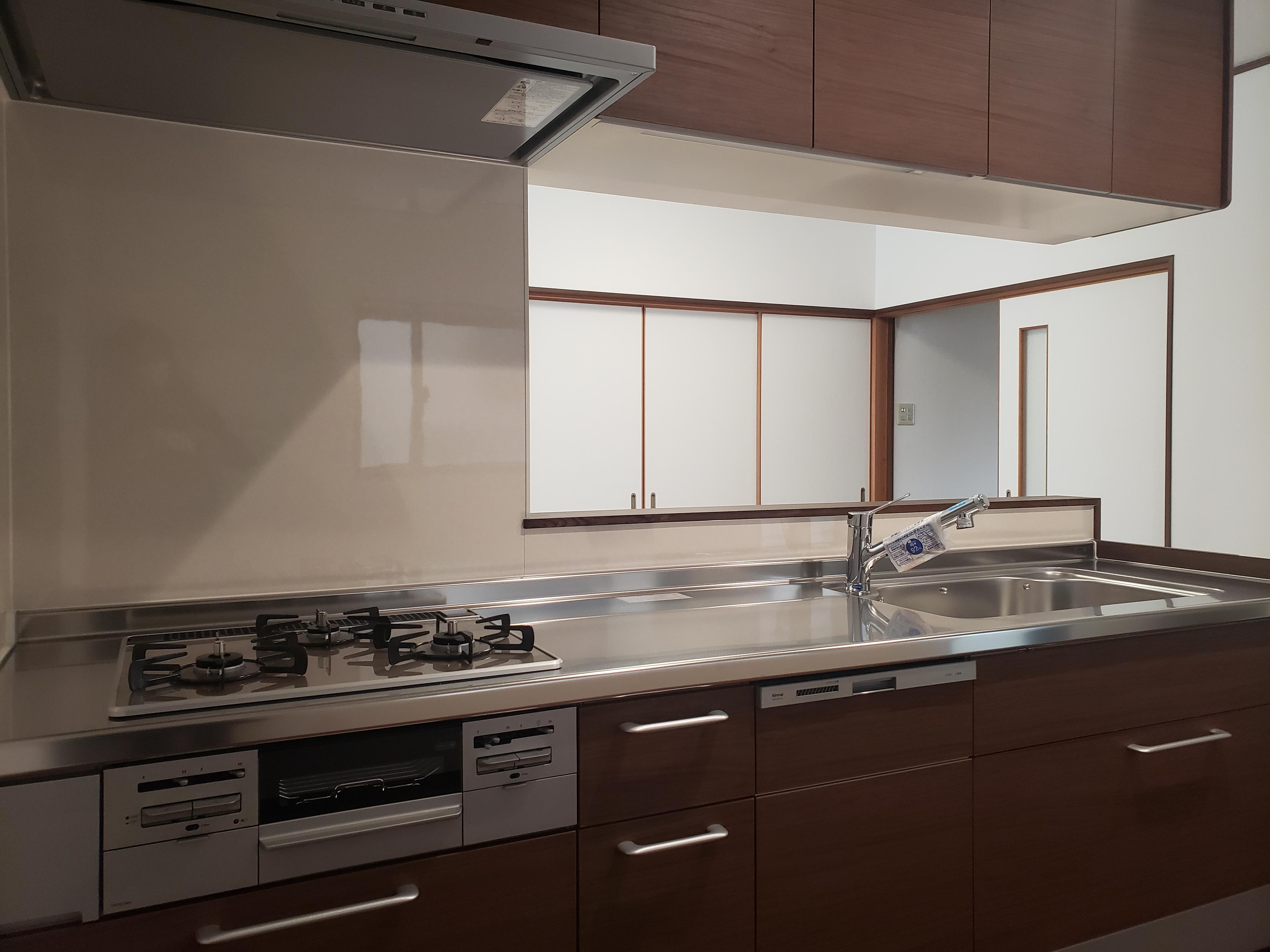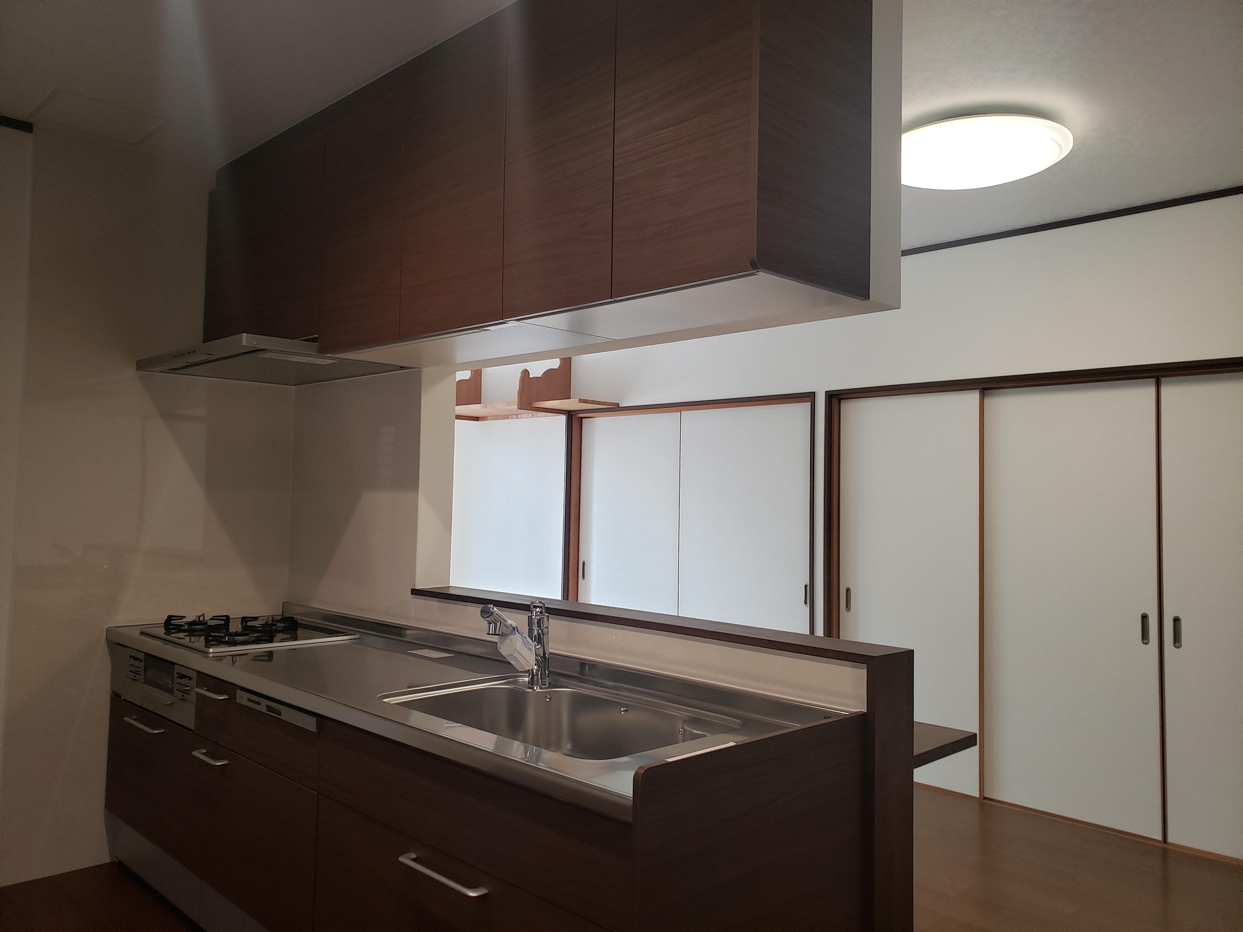 LDKの壁、天井クロスの張り替え・床のやり替えをしました。壁付けだったキッチンを、システムキッチンを新しく入れ替えて対面キッチンにしました。 トイレは便器、手洗い器の取替えました。 浴室は、既存のものを解体の上新しくシステムバスを設置しました。浴室暖房乾燥機も設置しました。 洗面台も新しく入れ替えしました。
